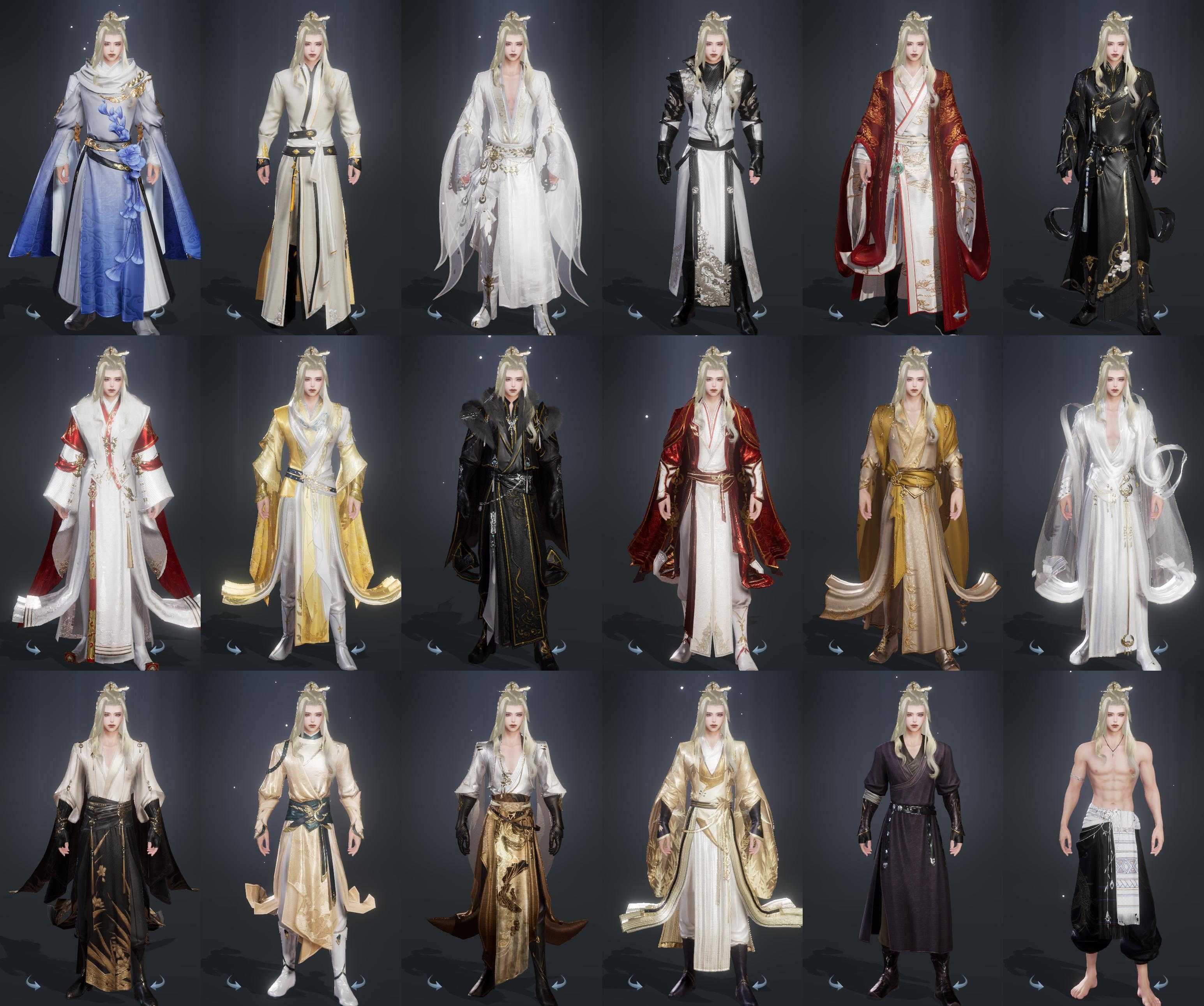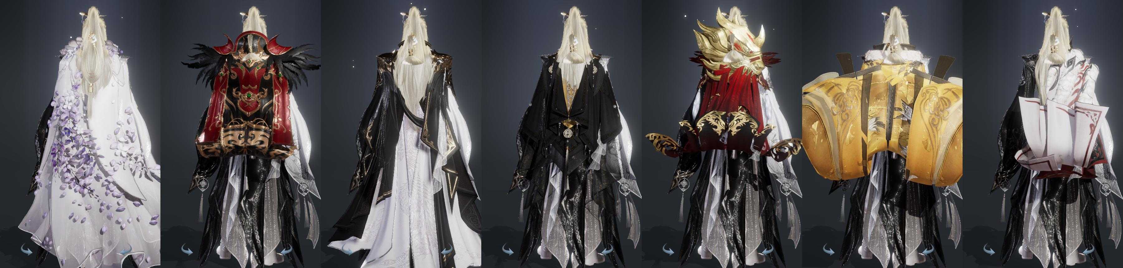 限时限量:[兰庭凤香, 霆螭月华, 中宵渊霜, 黑枕戈, 镜湖阑珊, 十二周年工作服, 小黑龙衣, 十三周年成衣]