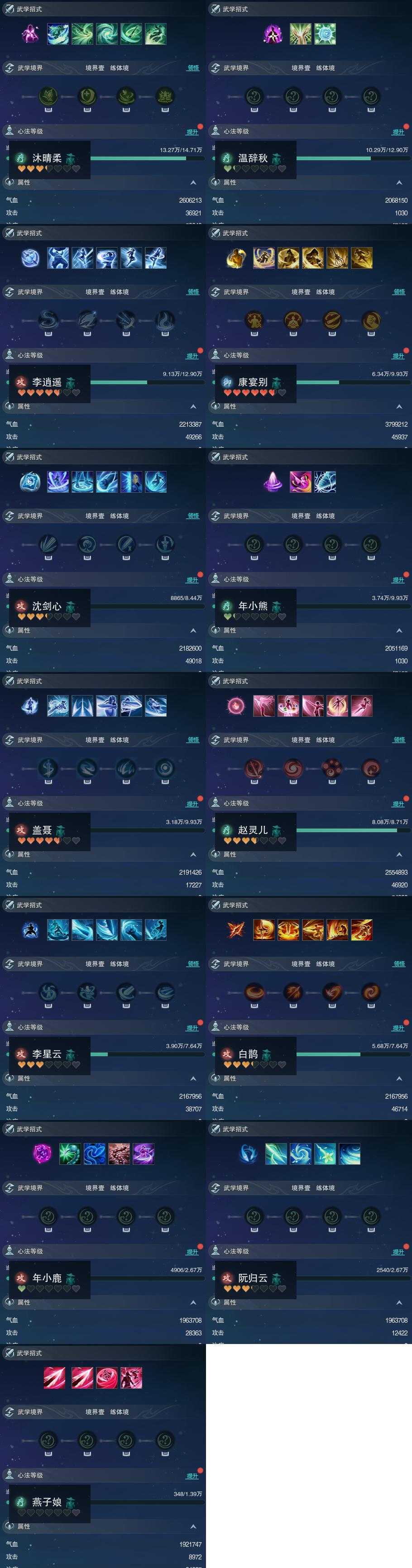 【同伴】沐晴柔70级境界壹,温辞秋69级境界壹,李逍遥69级境界壹,康宴别67级境界壹,沈剑心67级境界壹,年小熊67级境界壹,盖聂志67级境界壹,赵灵儿66级境界壹,李星云65级境界壹,白鹊志65级境界壹,年小鹿57级境界壹,阮归云57级境界壹,燕子娘52级境界壹