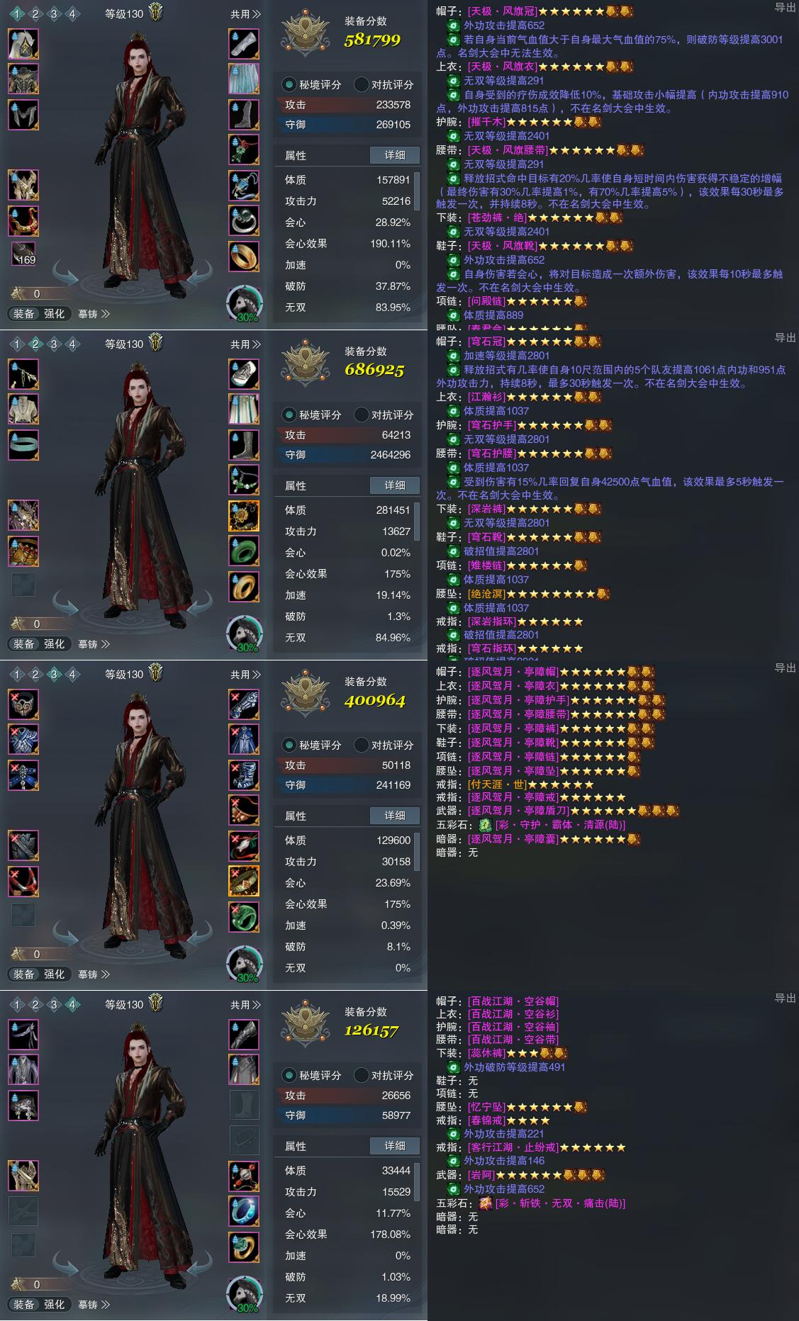 【装备】130级,分山劲PVE581799,铁骨衣PVE686925,苍云装备三400964,装备四126157