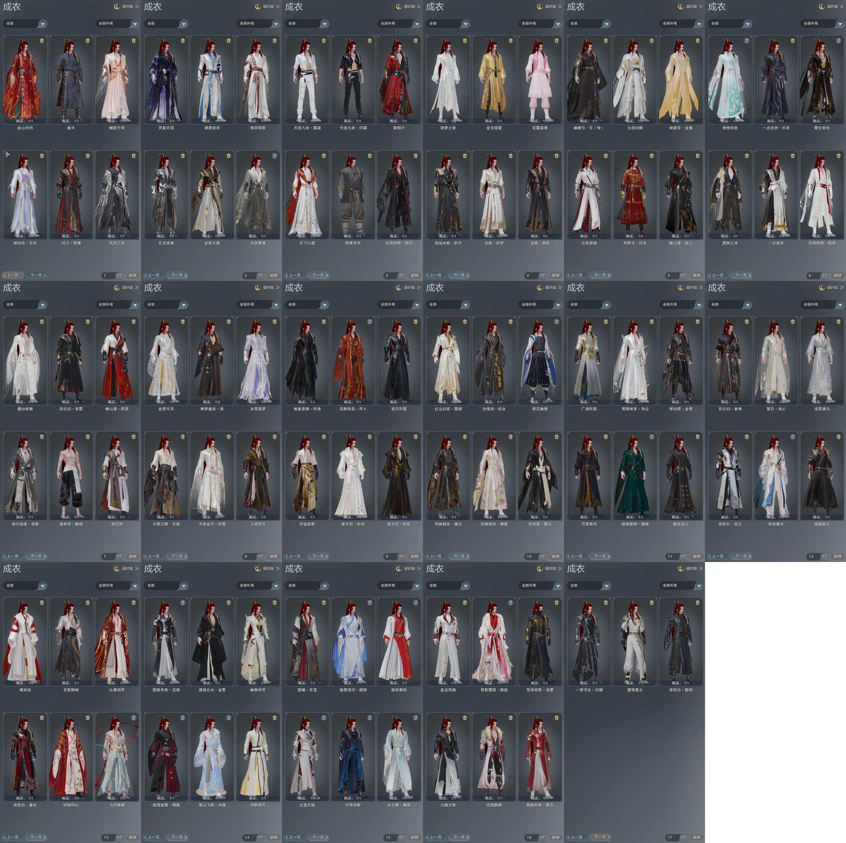 单盒成衣:[小白龙衣, 丝路盒衣, 踏云盒衣, 一代乘风衣, 黑凤舞衣, 白狮盒衣, 红黑妖龙衣, 黑幽馥衣替, 络羽衣, 十七盒衣]