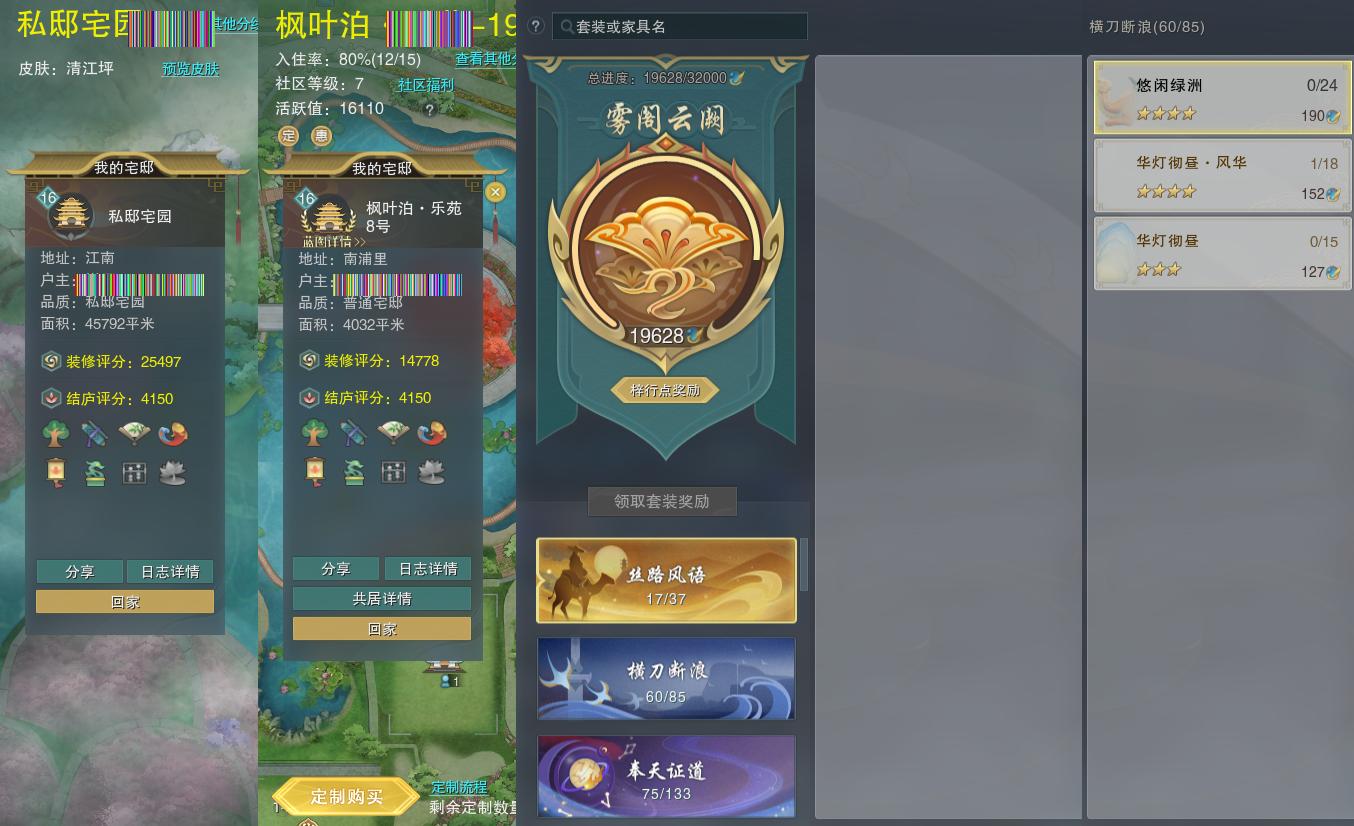 【家园】房屋等级16,社区等级了,私邸宅园,梓行点19628