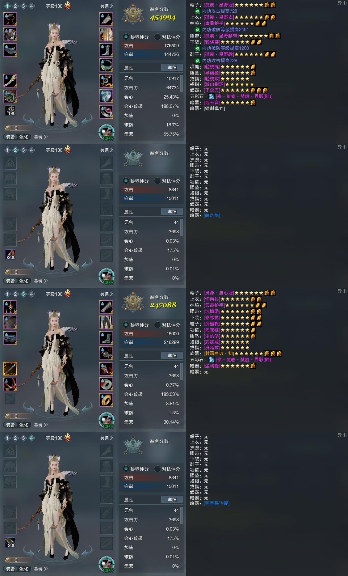 【装备】130级,焚影圣诀PVE454994,装备二0,装备三247088,装备四0