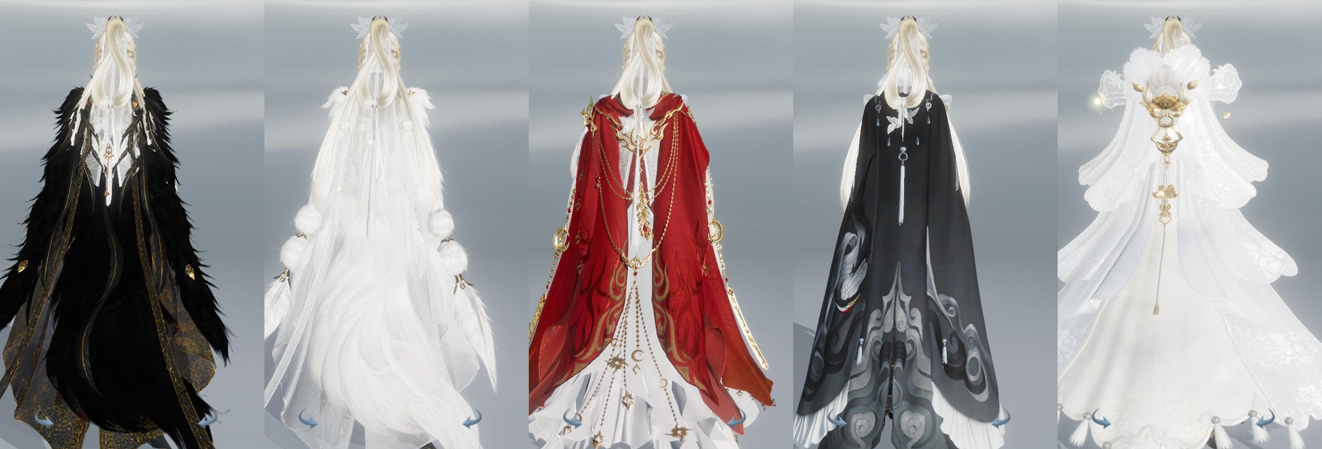 【披风】5个,[青盒子披风, 喵盒子披风, 白莲花, 黑狐裘, 白狐裘]
