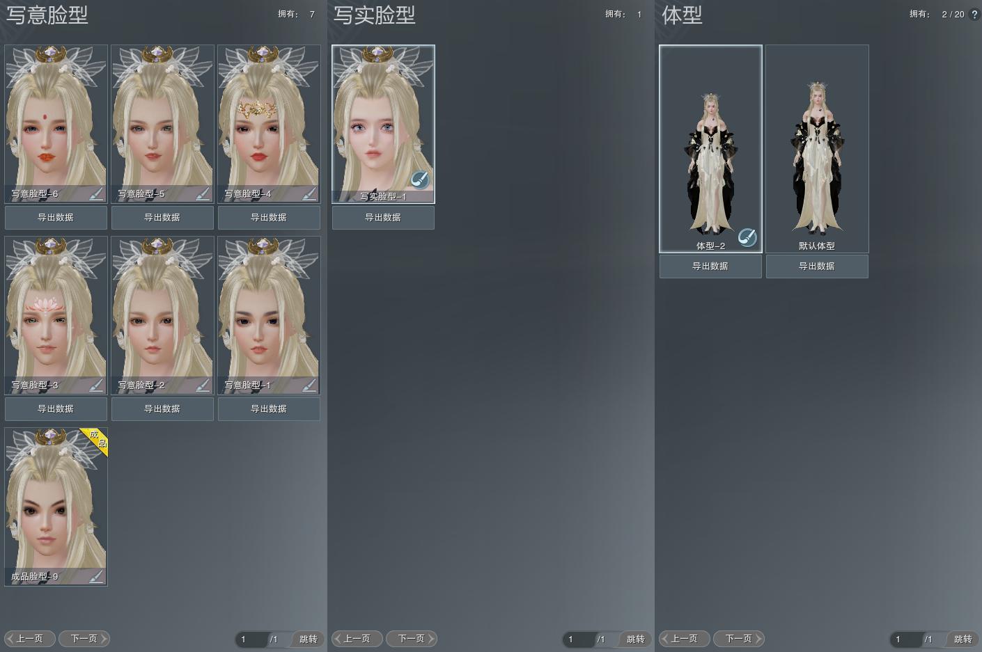 【捏脸】写意脸型7个,写实脸型1个,体型2个