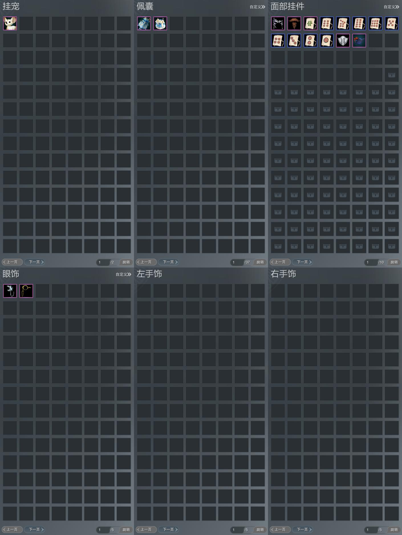 盒子:[雪月盒, 喵盒, 红凤舞盒(标), 白菩提盒(豪), 青盒, 三代紫重阳盒, 白如归盒(缺黑发), 黑玲珑盒, 三代元宵盒, 白明光盒, 金幽昙(标)]