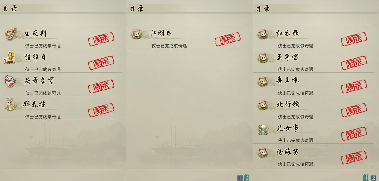 【奇遇】4个[惜往日, 生死判, 庆舞良宵, 拜春擂]