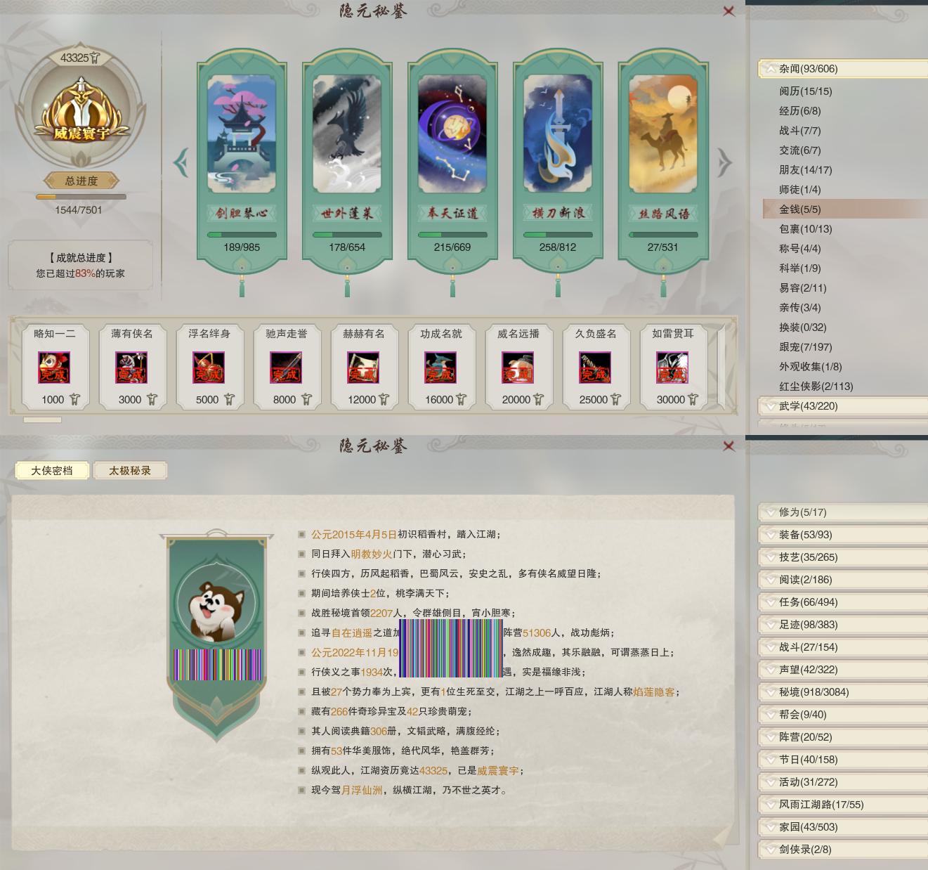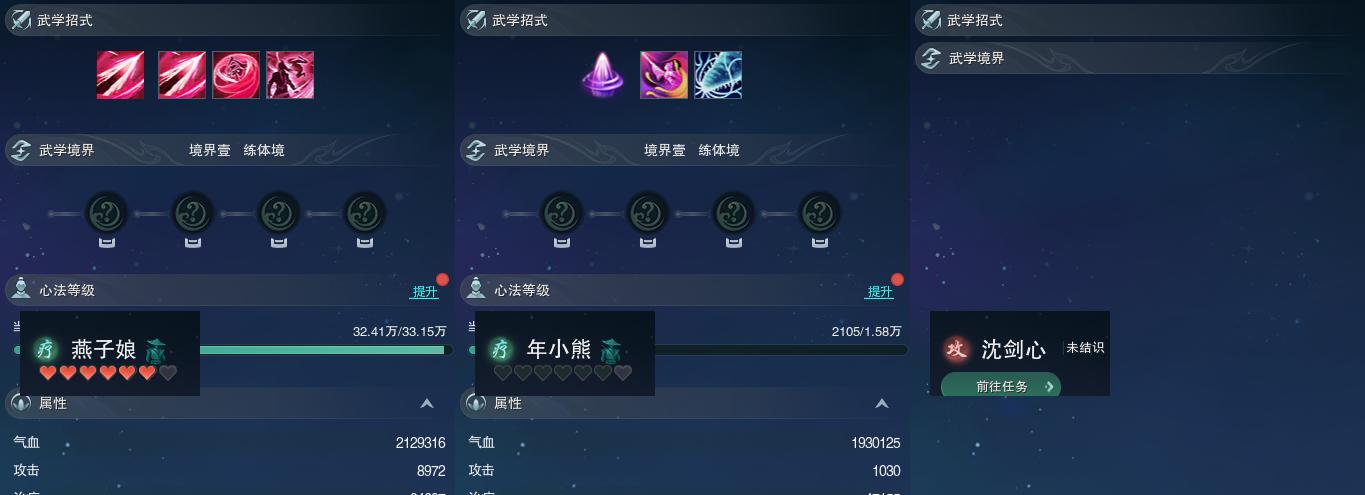【同伴】燕子娘76级境界壹,年小熊53级境界壹,沈剑心级