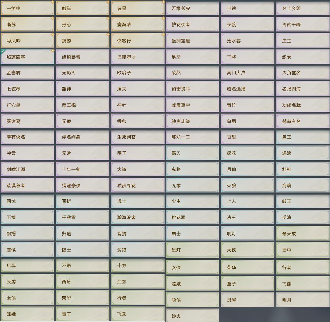 【奇趣】25个[哼哼将军, 兰船, 子夜墨歌, 霞醴碎香, 乘雀揽星, 千里炎龙, 翔月, 猛男椅子, 金翅苍宇雕, 骆驼]