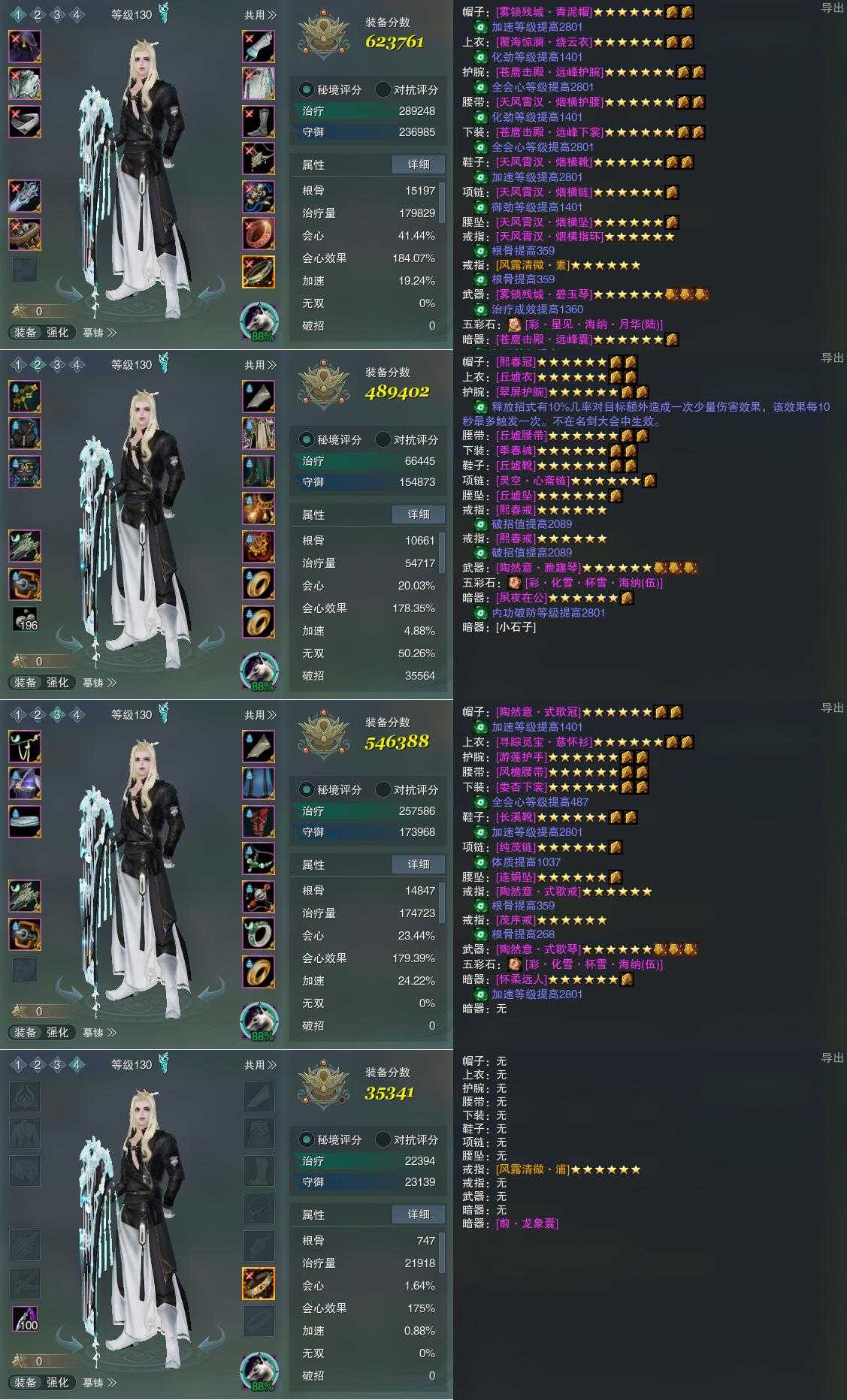 【装备】130级,相知PVE623761,莫问PVE489402,相知PVE546388,装备四35341
