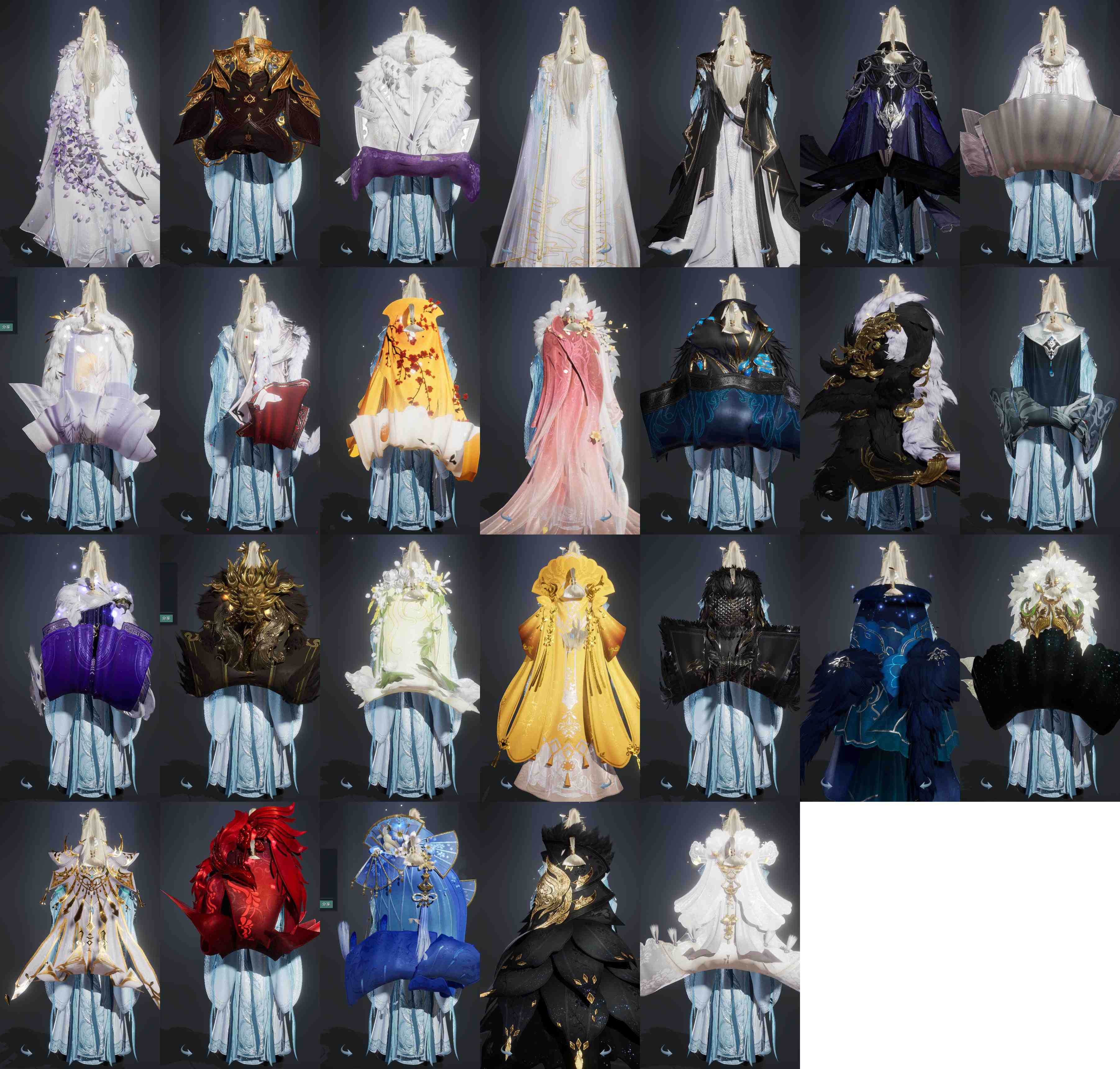 【肩饰】23左,21右,[绝代仙·墨楼·左, 虞渊引梦·左, 云岚叠岫·左, 赤羽逍遥·左, 天穹掠影·左, 鹤影天青·左, 九阙天影·左][虞渊引梦·右, 云岚叠岫·右, 天穹掠影·右, 鹤影天青·右, 九阙天影·右]