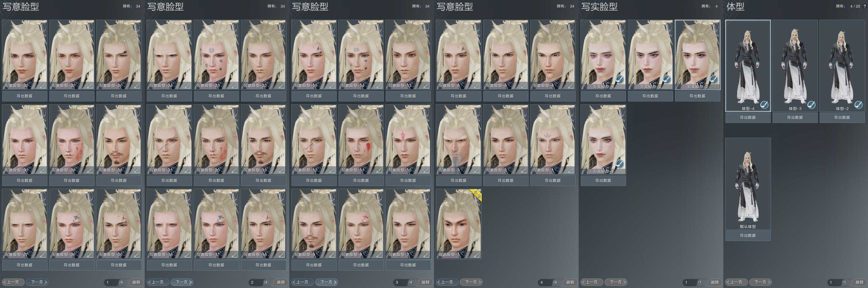 【捏脸】写意脸型34个,写实脸型4个,体型4个