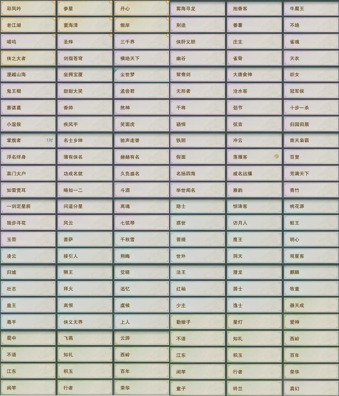 【奇珍】22个[枫林酒, 胜负局, 稚子心, 青草歌, 荆轲刺, 破晓鸣, 一念间, 东海客, 戎马边, 锋芒展]