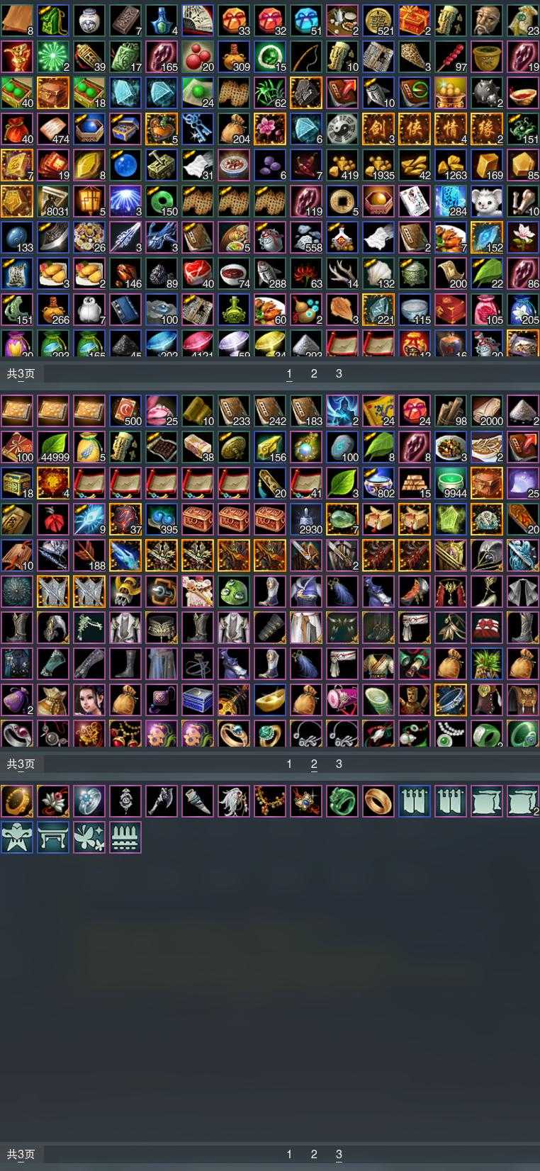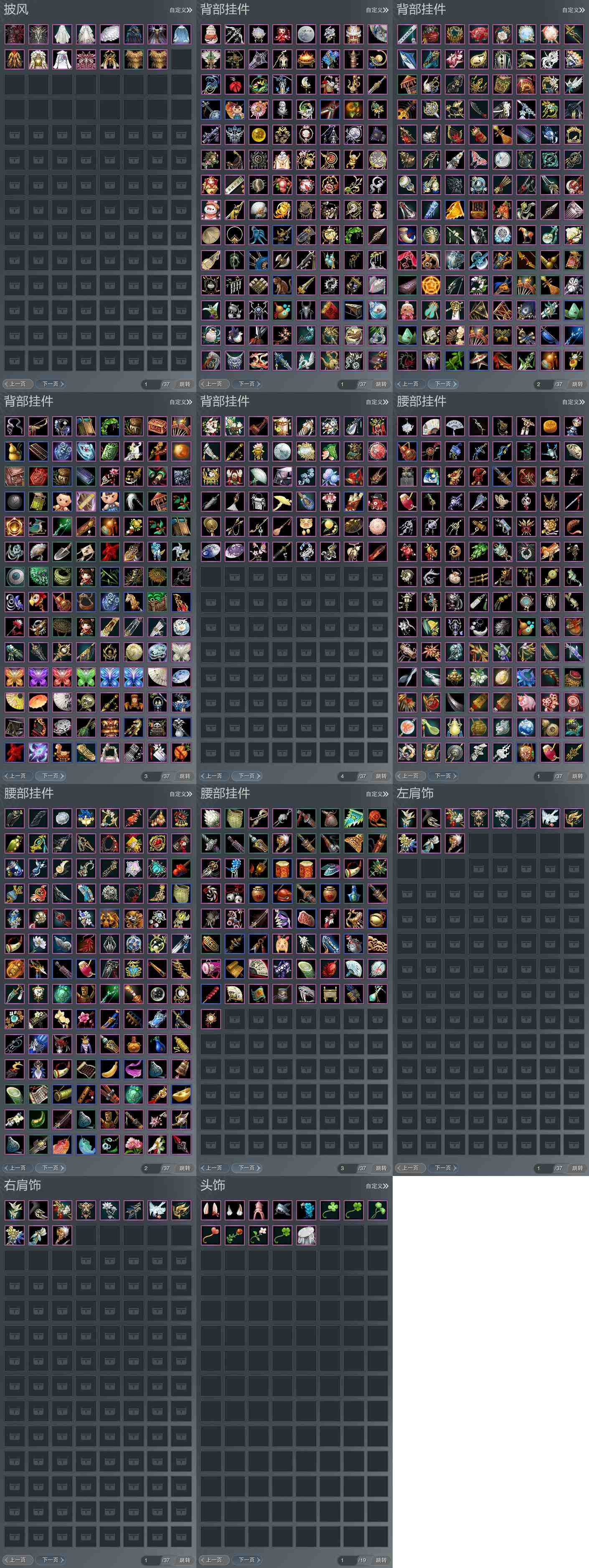 盒子:[白端午盒(缺腰挂), 雪月盒, 松间盒(标), 秃盒, 二代花朝盒, 红盒, 一七盒, 猪盒, 三七盒, 蘑菇盒, 黑凤舞盒(标), 三中盒, 青盒, 唐盒, 苍盒, 一代花朝白盒, 白楼兰盒, 白四元盒, 黑狮盒]