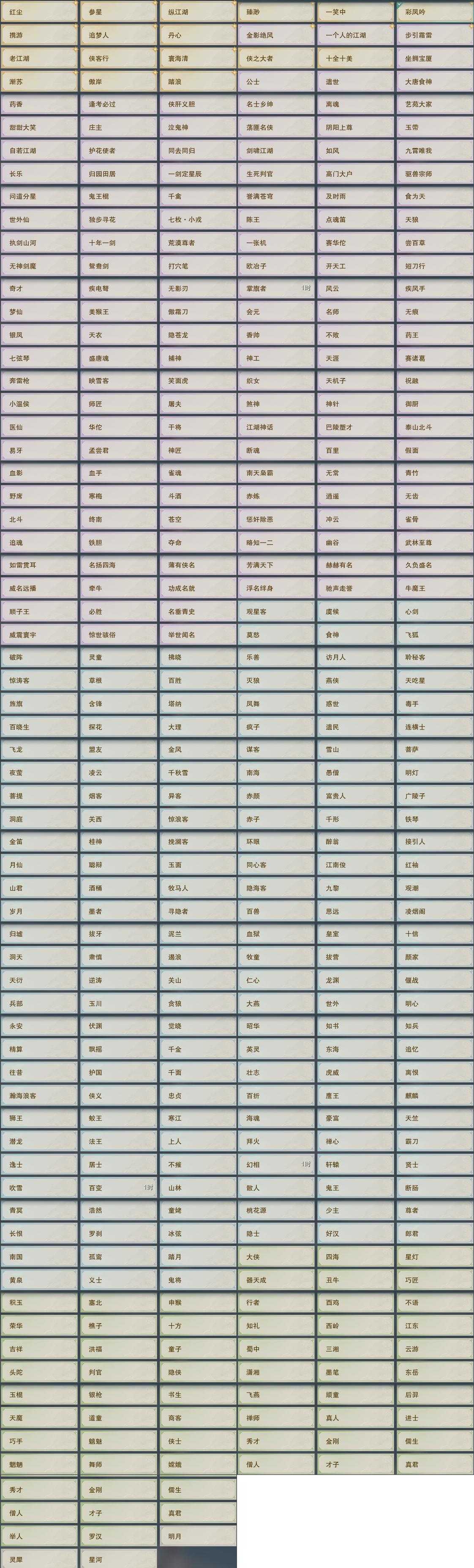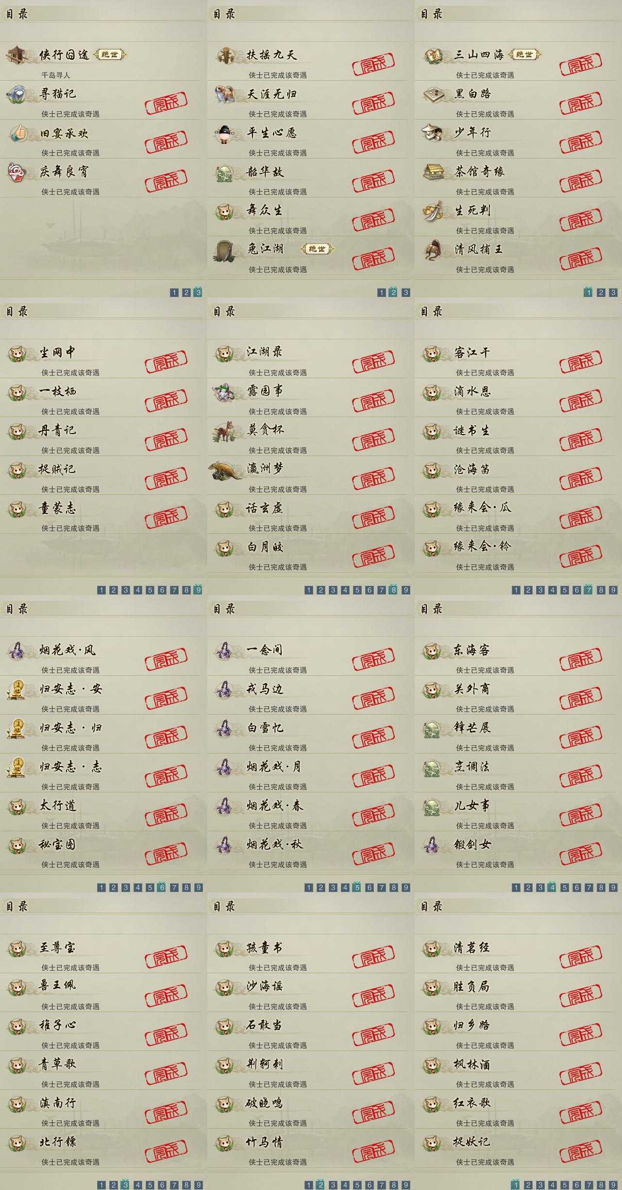 【奇遇】16个[天涯无归, 三山四海, 平生心愿, 兔江湖, 黑白路, 韶华故, 少年行, 扶摇九天, 舞众生, 清风捕王, 侠行囧途, 寻猫记, 茶馆奇缘, 庆舞良宵, 生死判, 旧宴承欢]