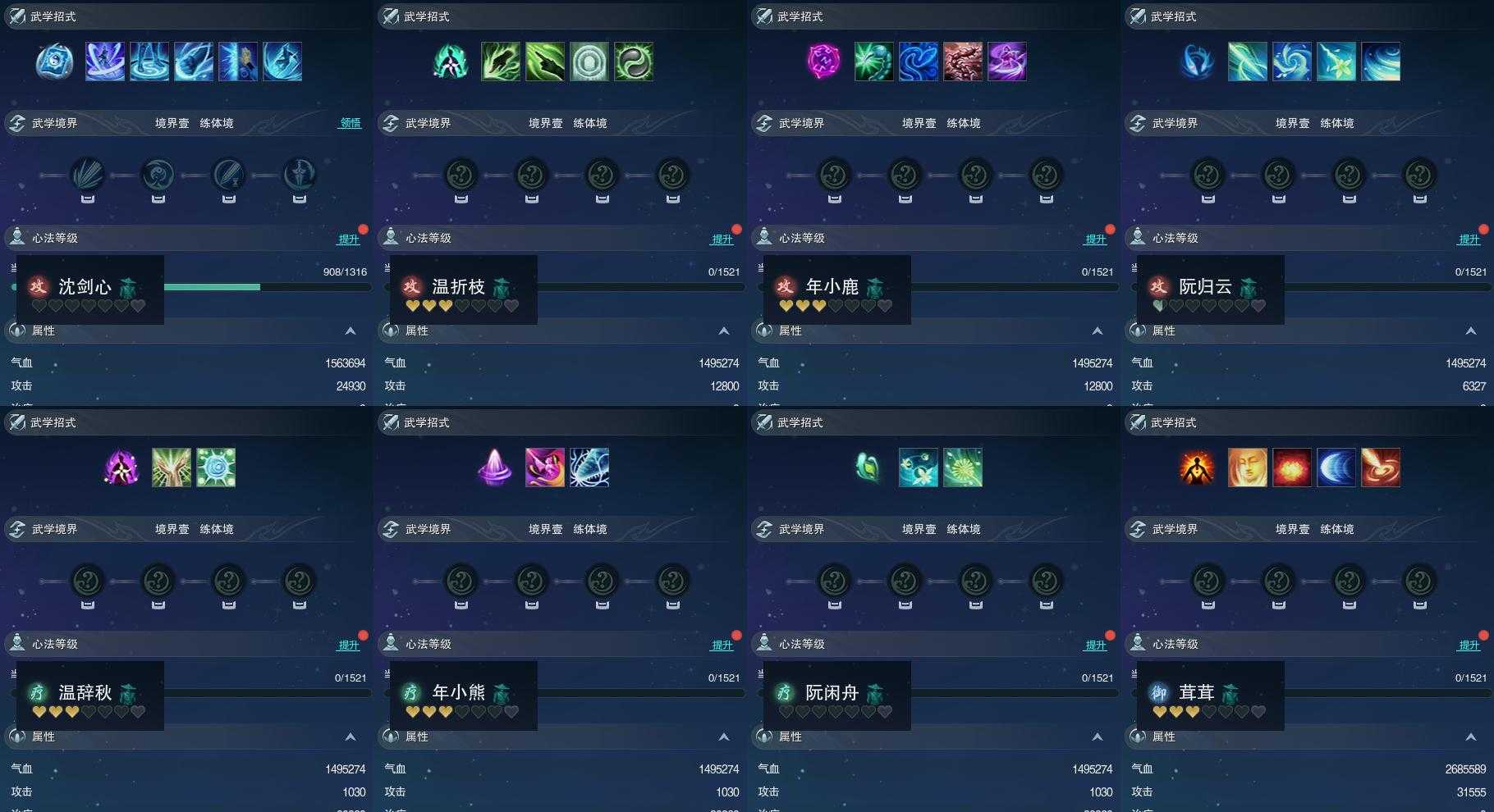 【同伴】沈剑心8级境界壹,温折枝1级境界壹,年小鹿1级境界壹,阮归云1级境界壹,温辞秋1级境界壹,年小熊1级境界壹,阮闲舟1级境界壹,茸茸志1级境界壹