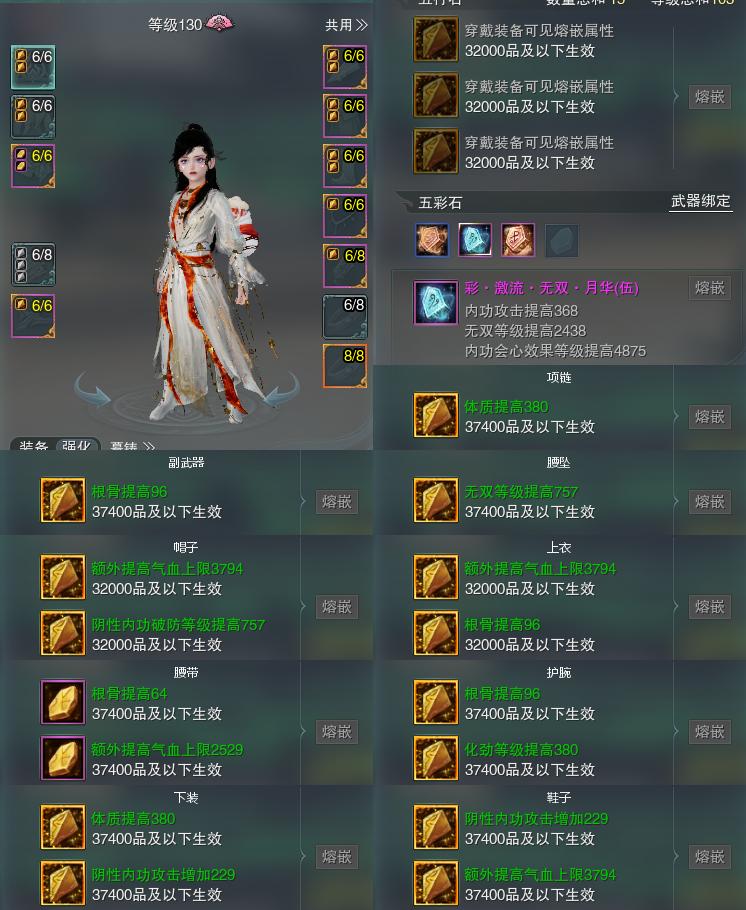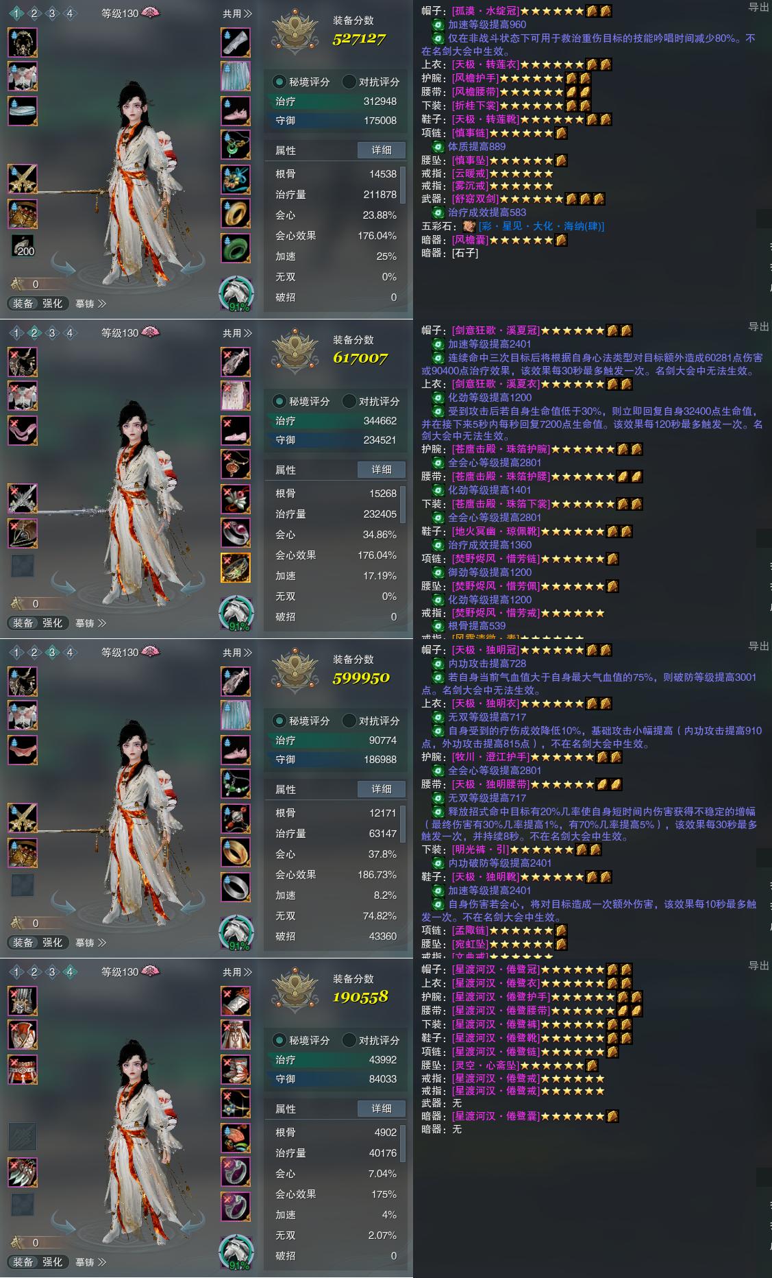 【装备】130级,云裳心经PVE527127,云裳心经PVE617007,冰心诀PVP599950,装备四190558