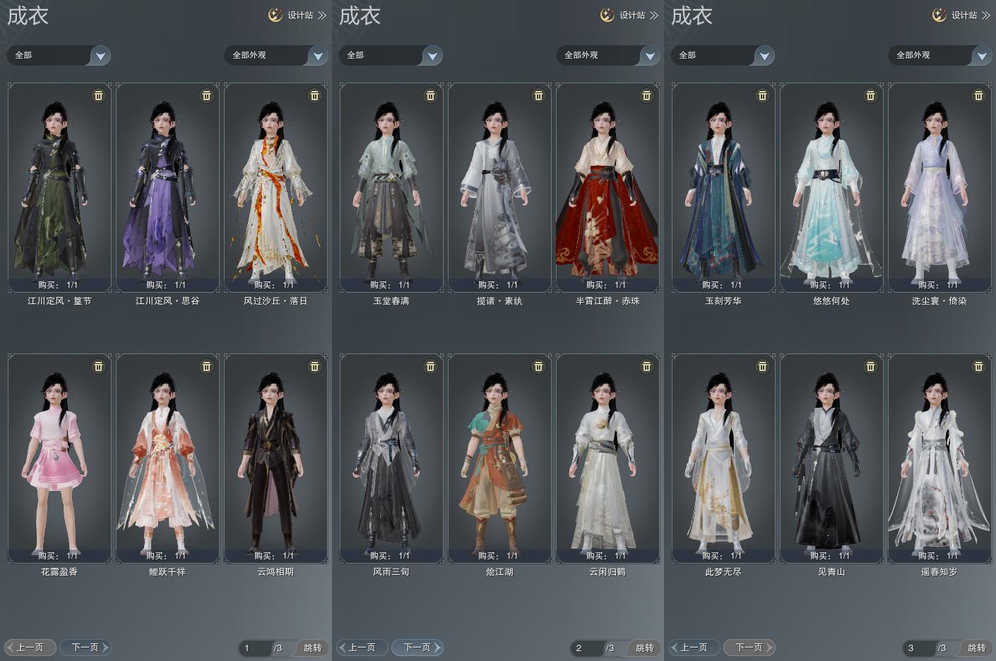 【成衣】总计18件,单盒成衣3件,限时限量7件,商城8件,下架0件