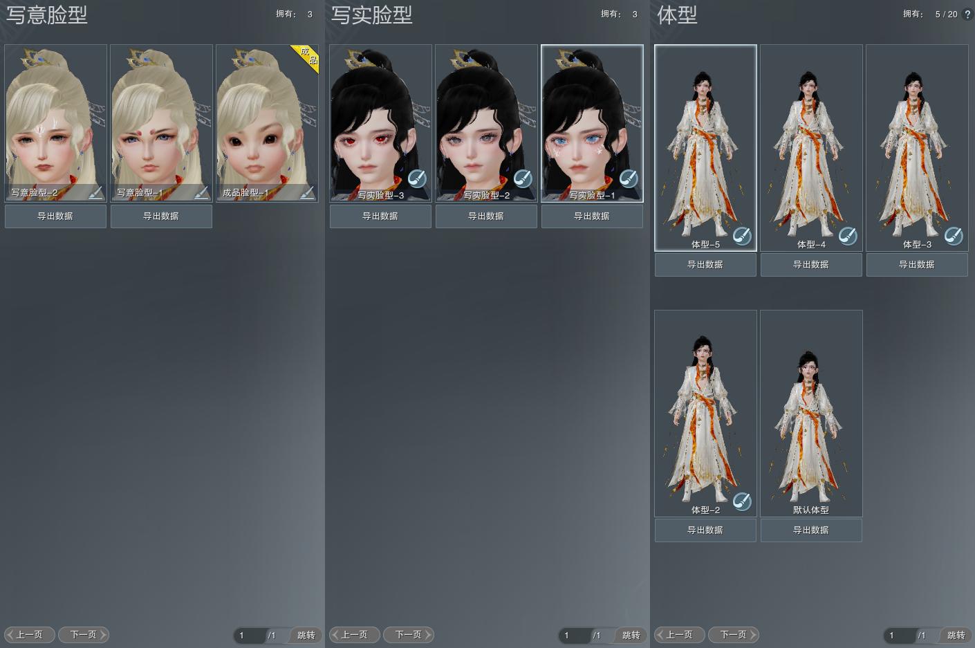 【捏脸】写意脸型3个,写实脸型3个,体型5个