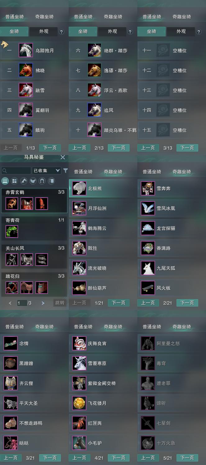 【坐骑】10个[踏炎不羁, 乌蹄抱月]