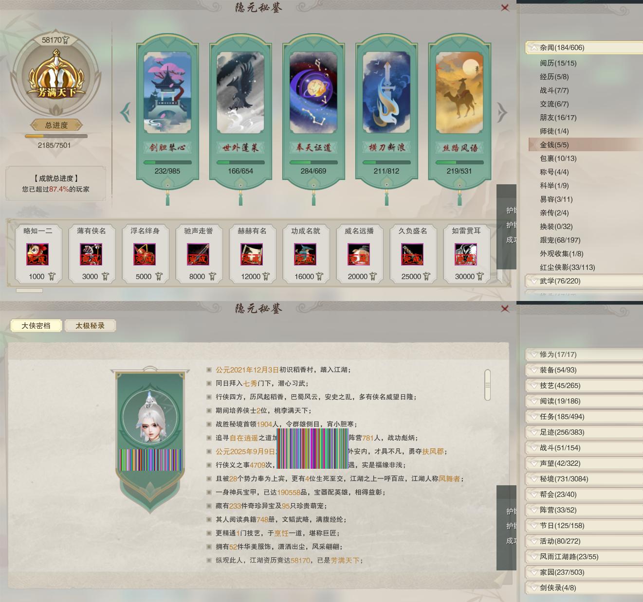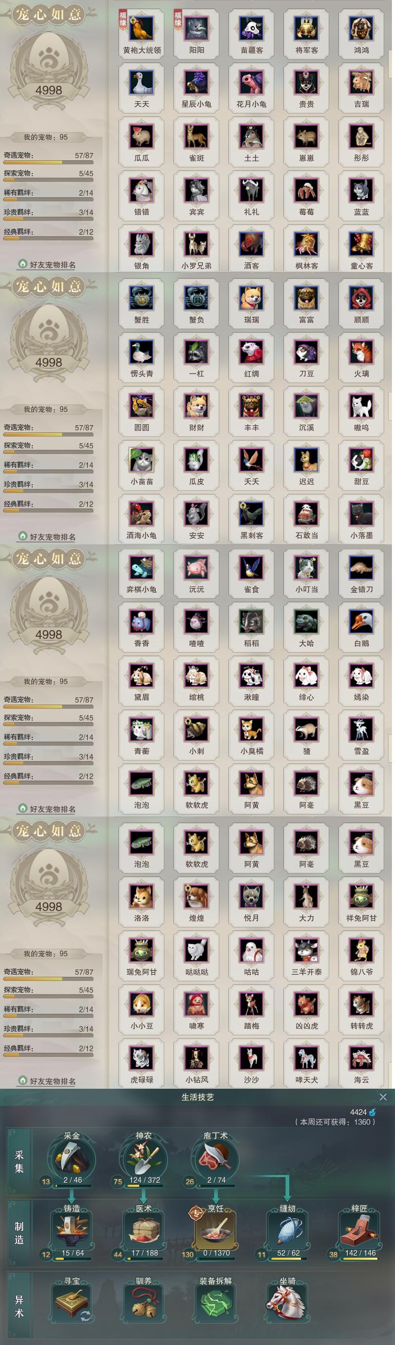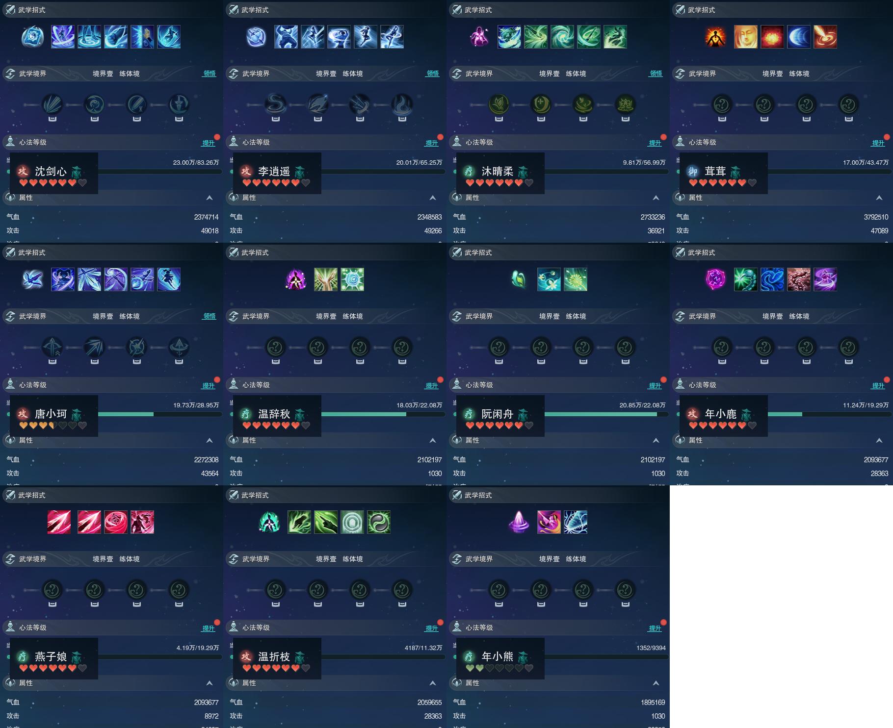 【同伴】沈剑心84级境界壹,李逍遥81级境界壹,沐晴柔80级境界壹,茸茸志78级境界壹,唐小珂75级境界壹,温辞秋73级境界壹,阮闲舟73级境界壹,年小鹿72级境界壹,燕子娘72级境界壹,温折枝68级境界壹,年小熊49级境界壹