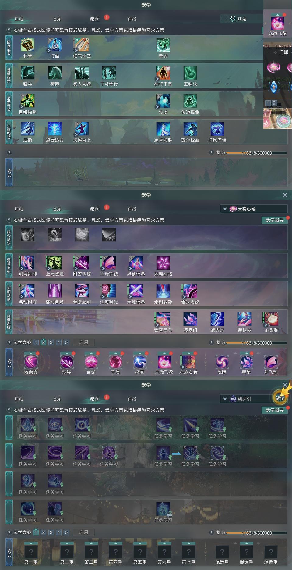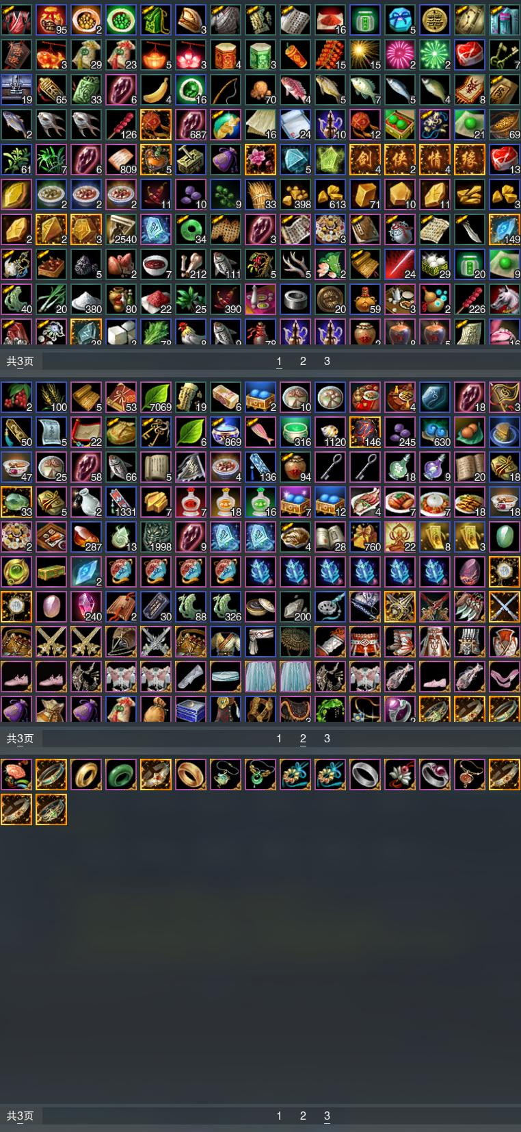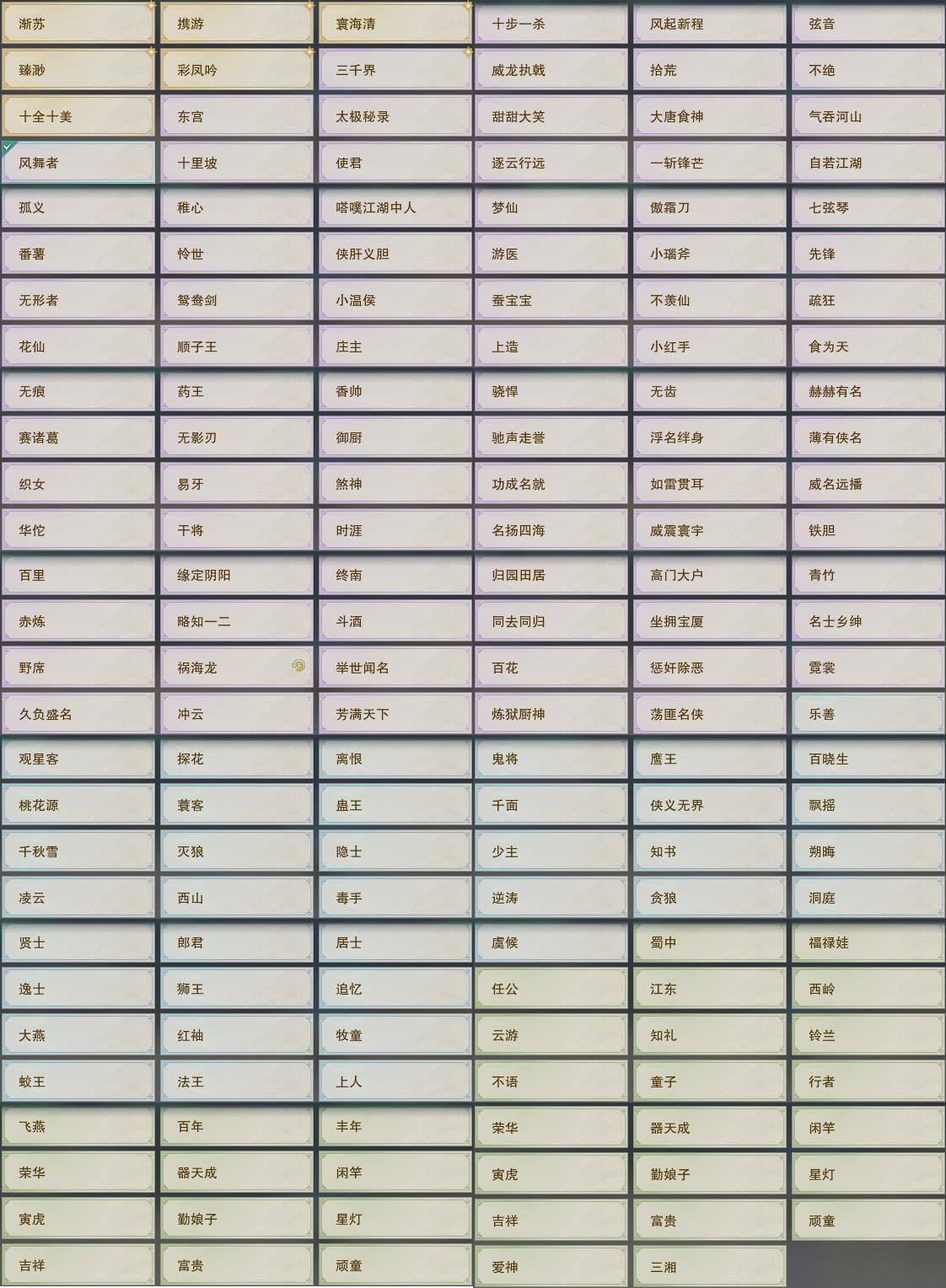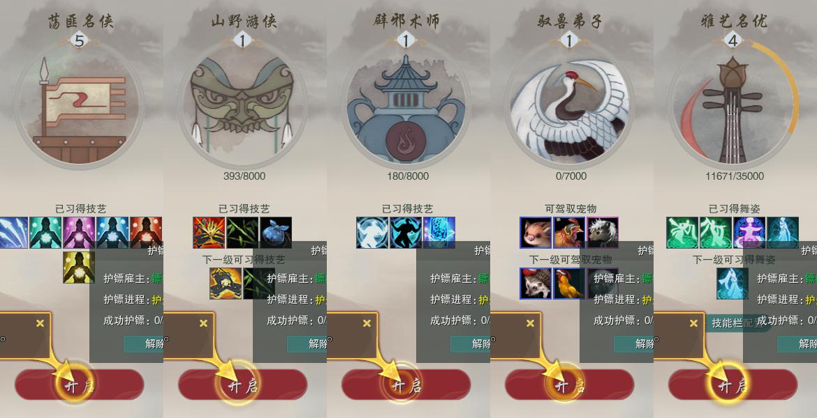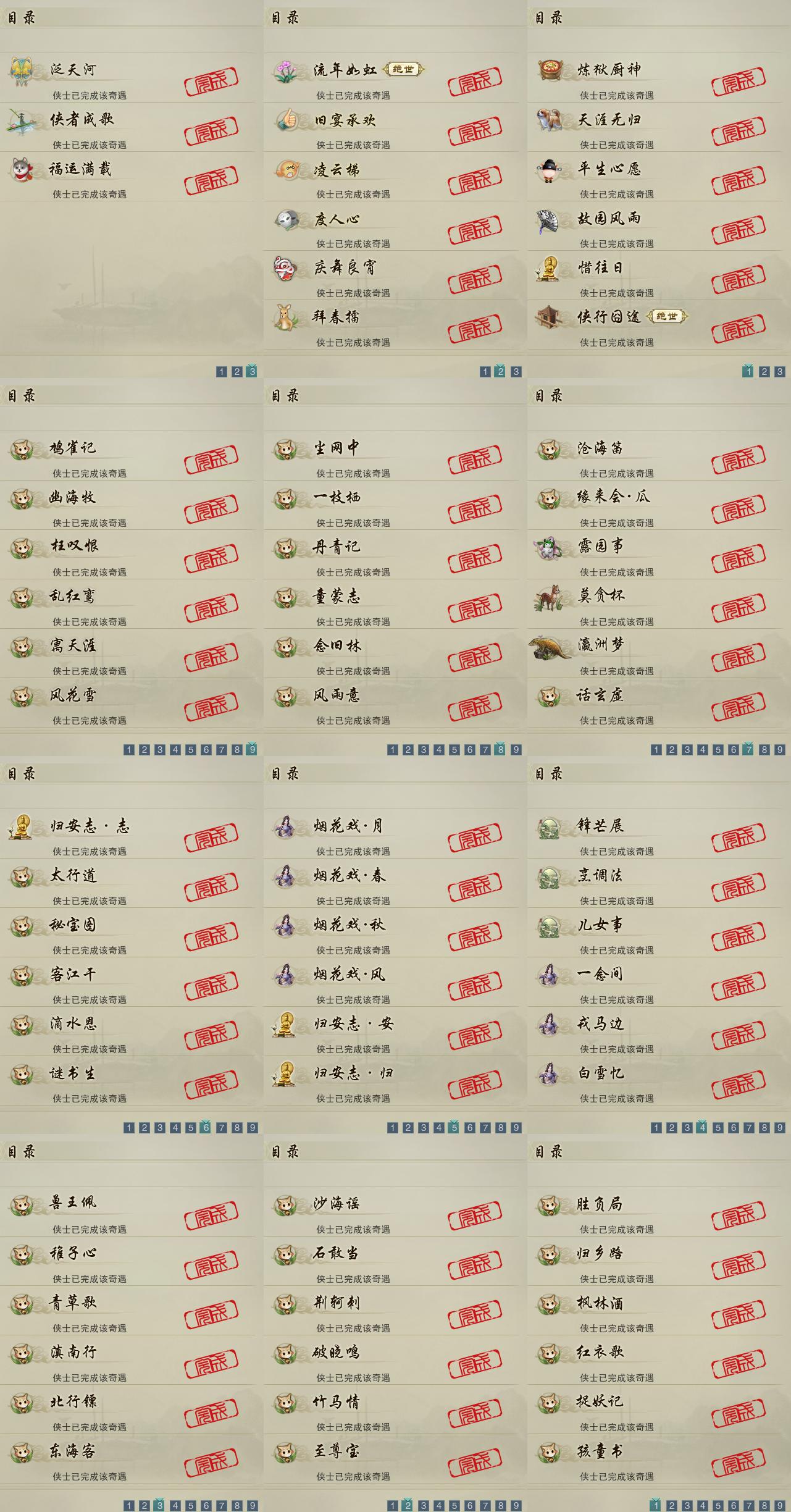 【奇遇】15个[天涯无归, 平生心愿, 惜往日, 故园风雨, 流年如虹, 侠行囧途, 庆舞良宵, 凌云梯, 炼狱厨神, 度人心, 旧宴承欢, 泛天河, 侠者成歌, 拜春擂, 福运满载]