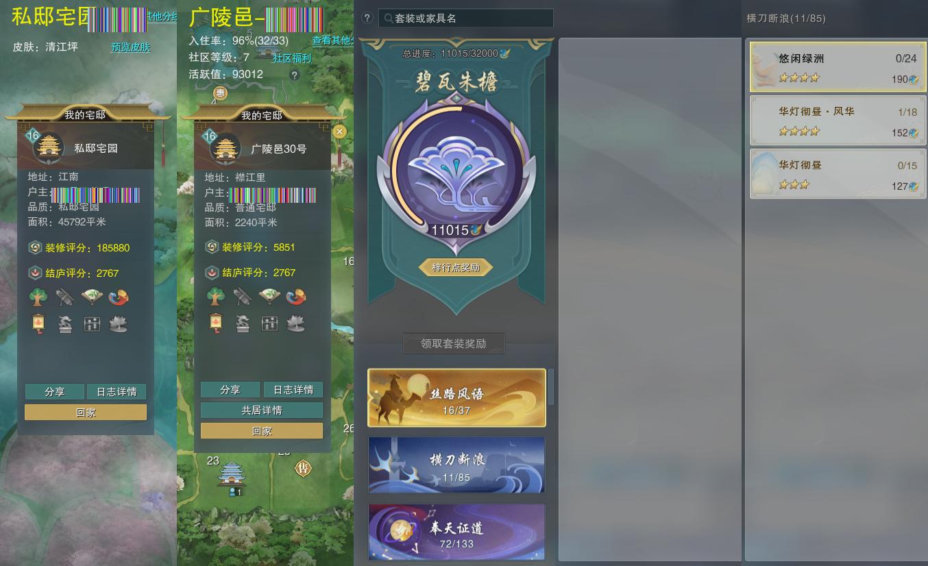 【家园】房屋等级16,社区等级了,私邸宅园,梓行点11015