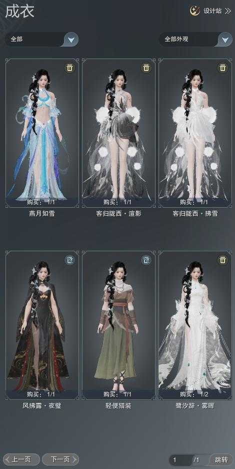 【成衣】总计6件,单盒成衣4件,限时限量1件,商城1件,下架0件