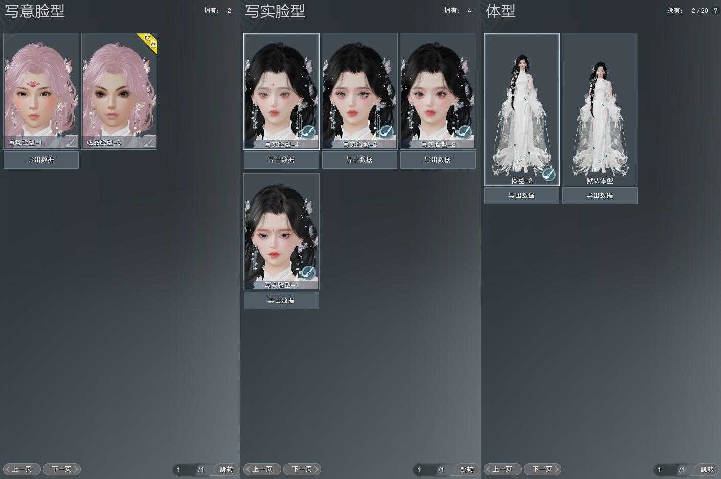 【捏脸】写意脸型2个,写实脸型4个,体型2个