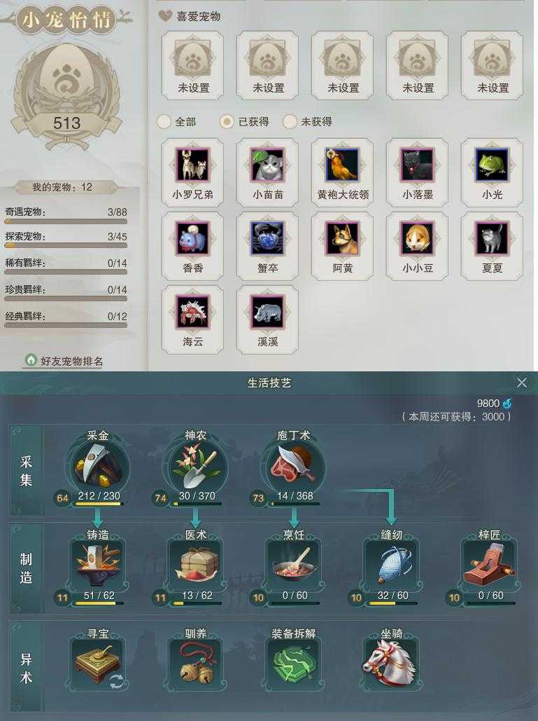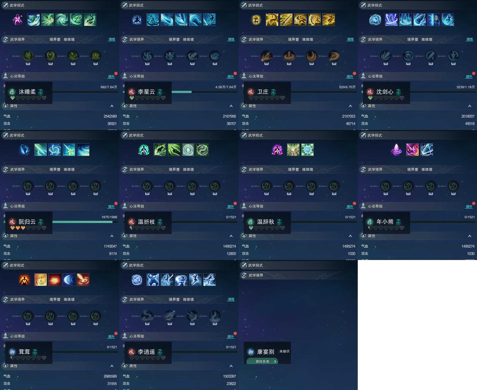 【同伴】沐晴柔65级境界壹,李星云65级境界壹,卫庄志64级境界壹,沈剑心52级境界壹,阮归云31级境界壹,温折枝1级境界壹,温辞秋1级境界壹,年小熊1级境界壹,茸茸志1级境界壹,李逍遥1级境界壹,康宴别级