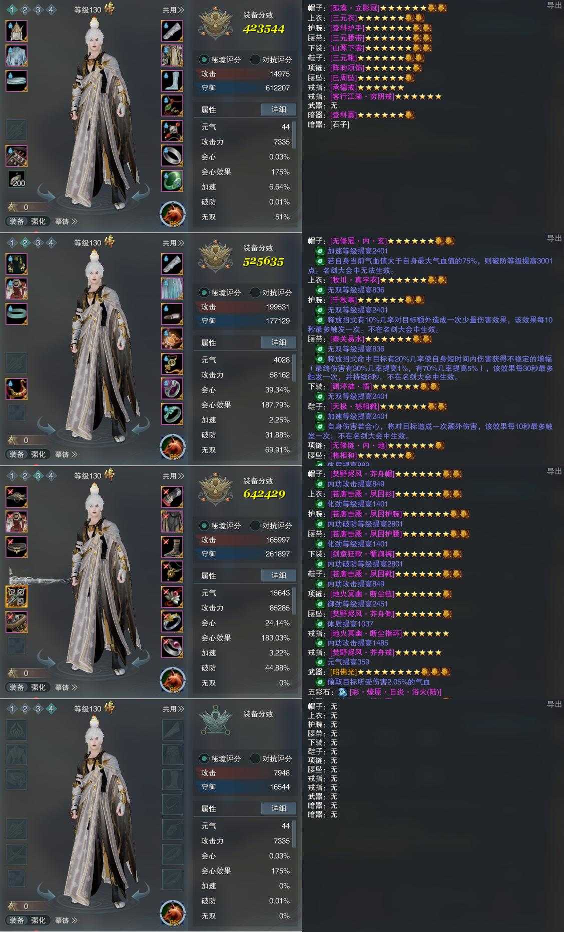 【装备】130级,洗髓经PVE423544,易筋经PVE525635,易筋经PVP642429,装备四0