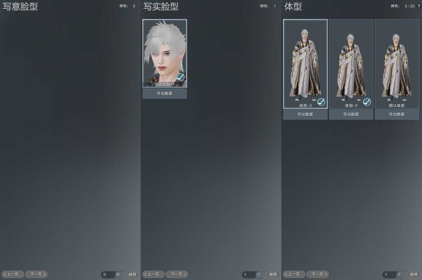 【捏脸】写意脸型0个,写实脸型1个,体型3个