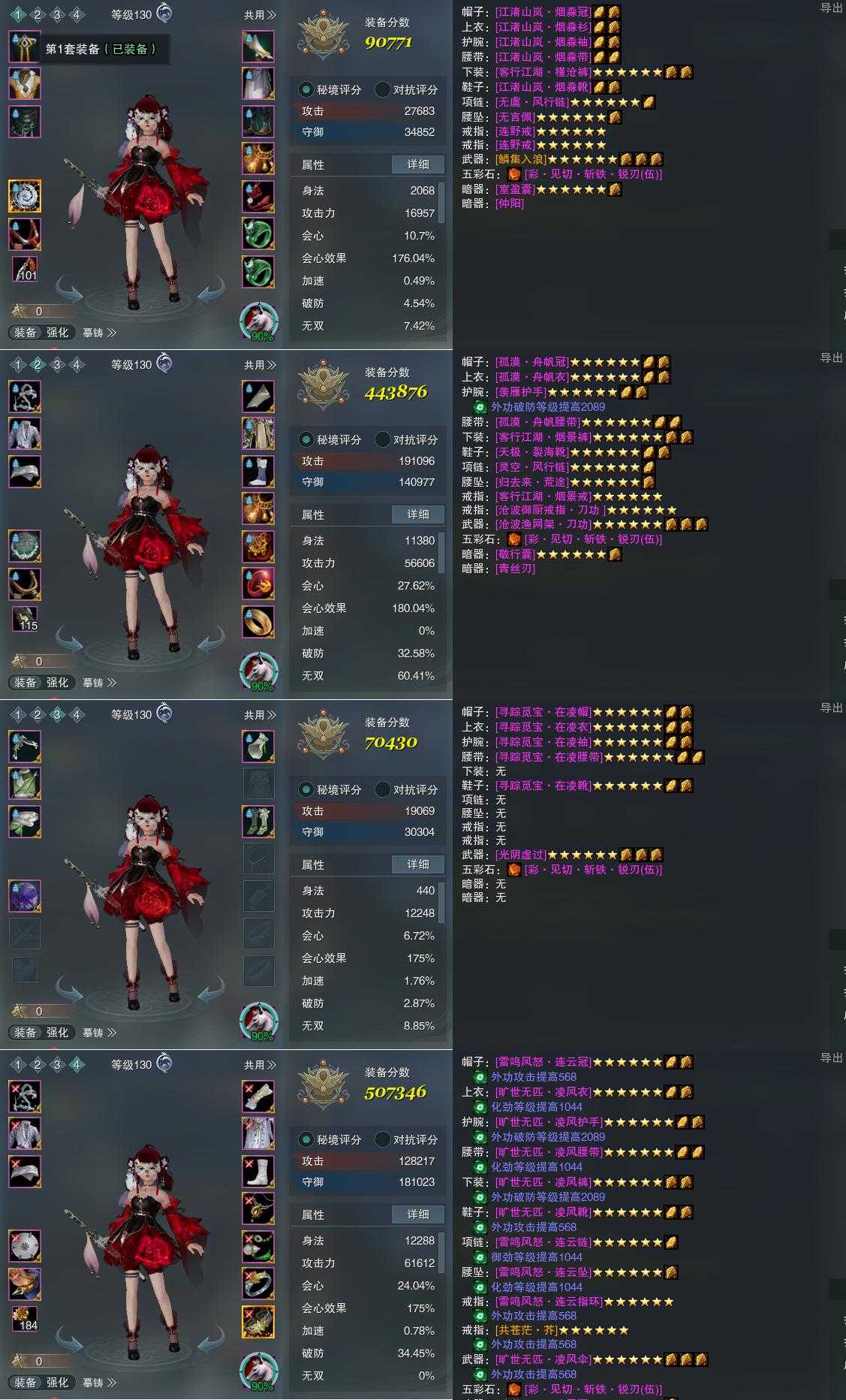 【装备】130级,装备一90771,凌海诀PVE443876,装备三70430,凌海诀PVP507346