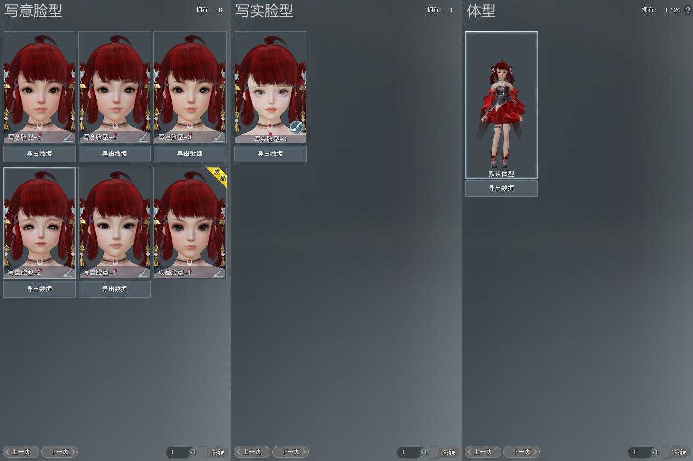 【捏脸】写意脸型6个,写实脸型1个,体型1个