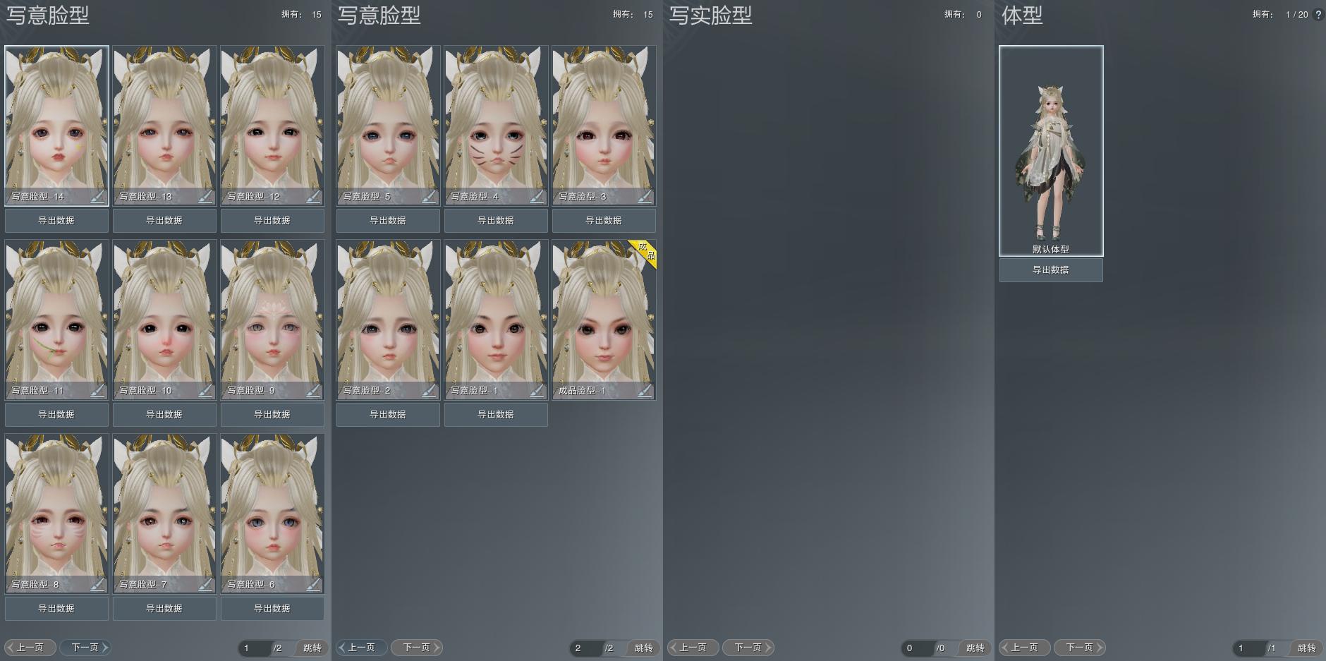 【捏脸】写意脸型15个,写实脸型0个,体型1个