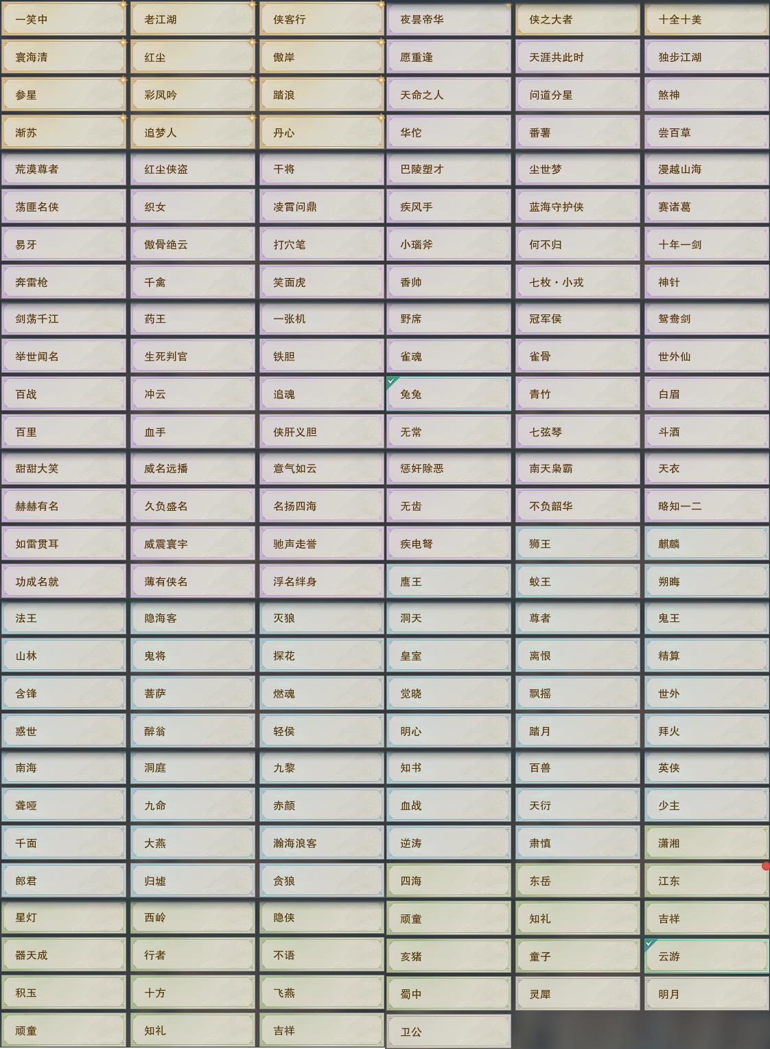 【奇珍】35个[枫林酒, 红衣歌, 归乡路, 孩童书, 捉妖记, 至尊宝, 石敢当, 稚子心, 滇南行, 青草歌]