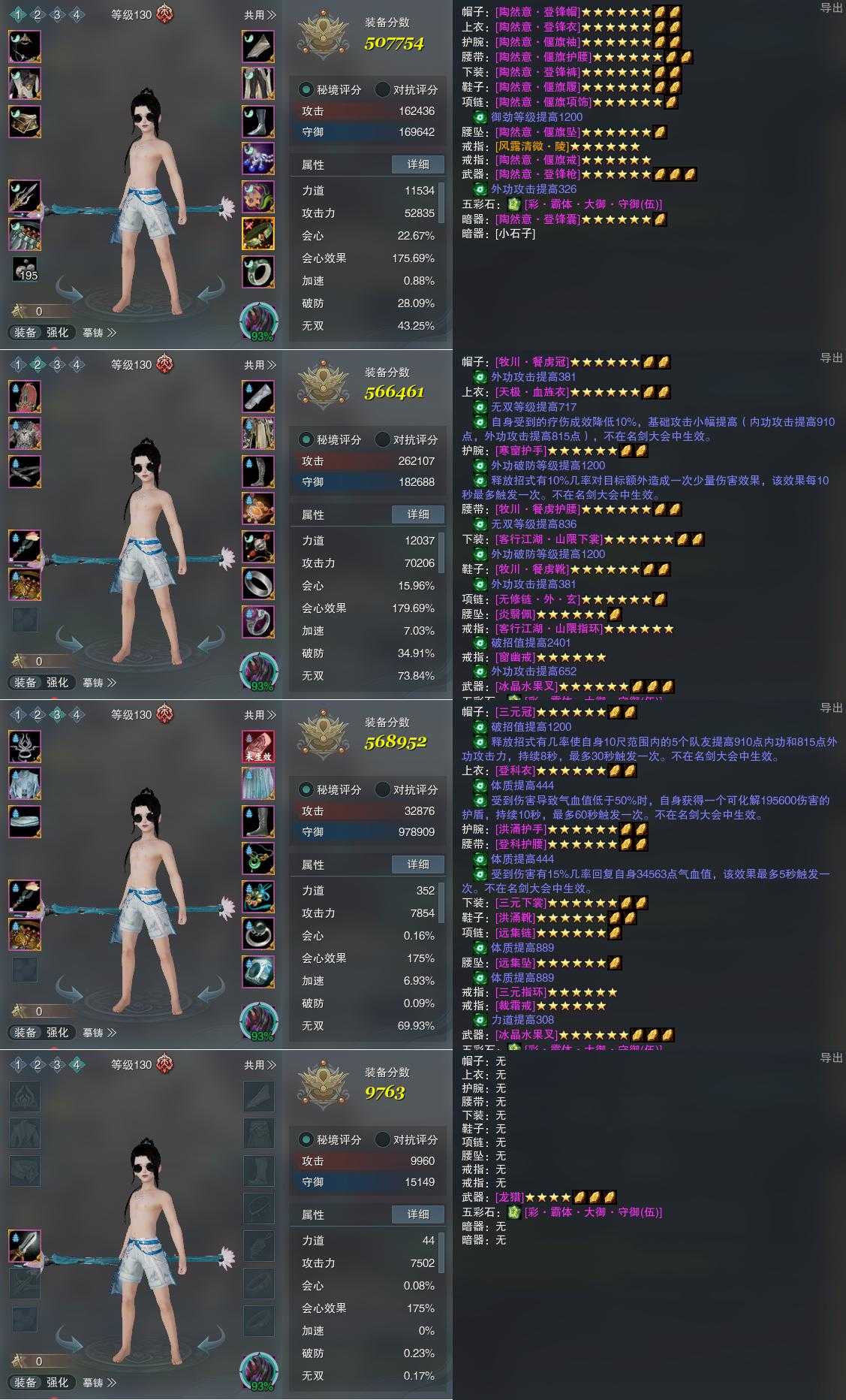 【装备】130级,傲血战意PVP507754,傲血战意PVE566461,铁牢律PVE568952,装备四9763