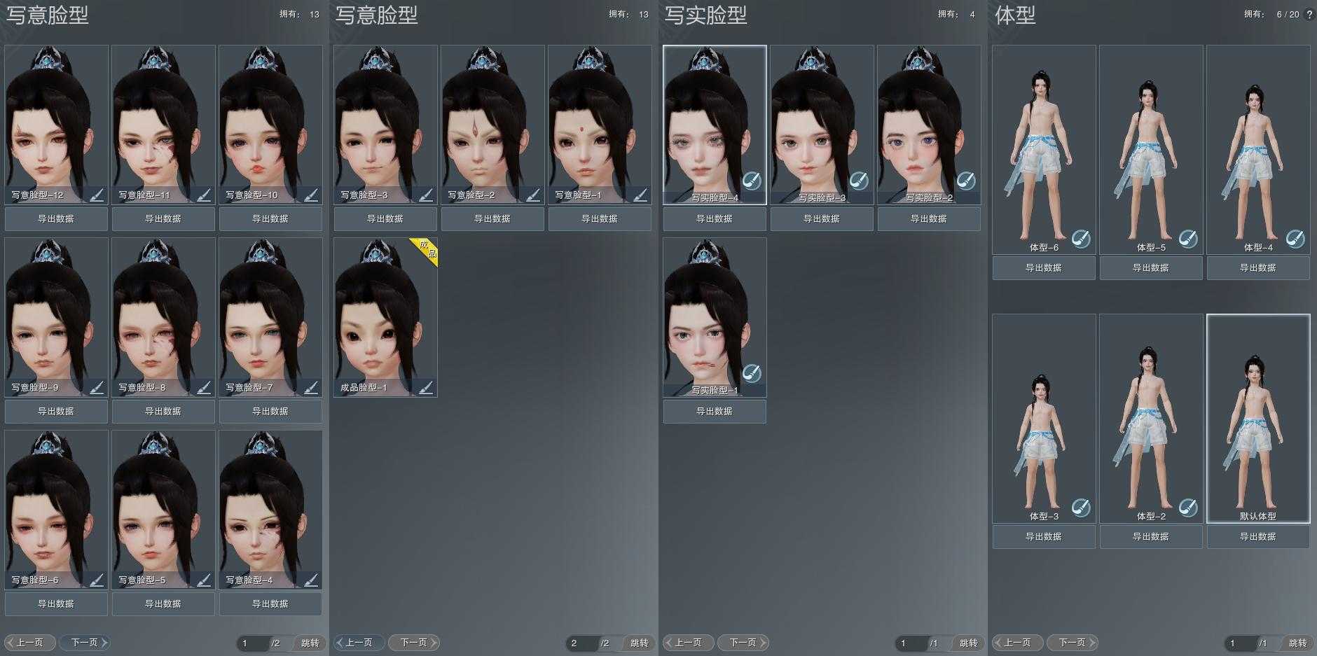 【捏脸】写意脸型13个,写实脸型4个,体型6个