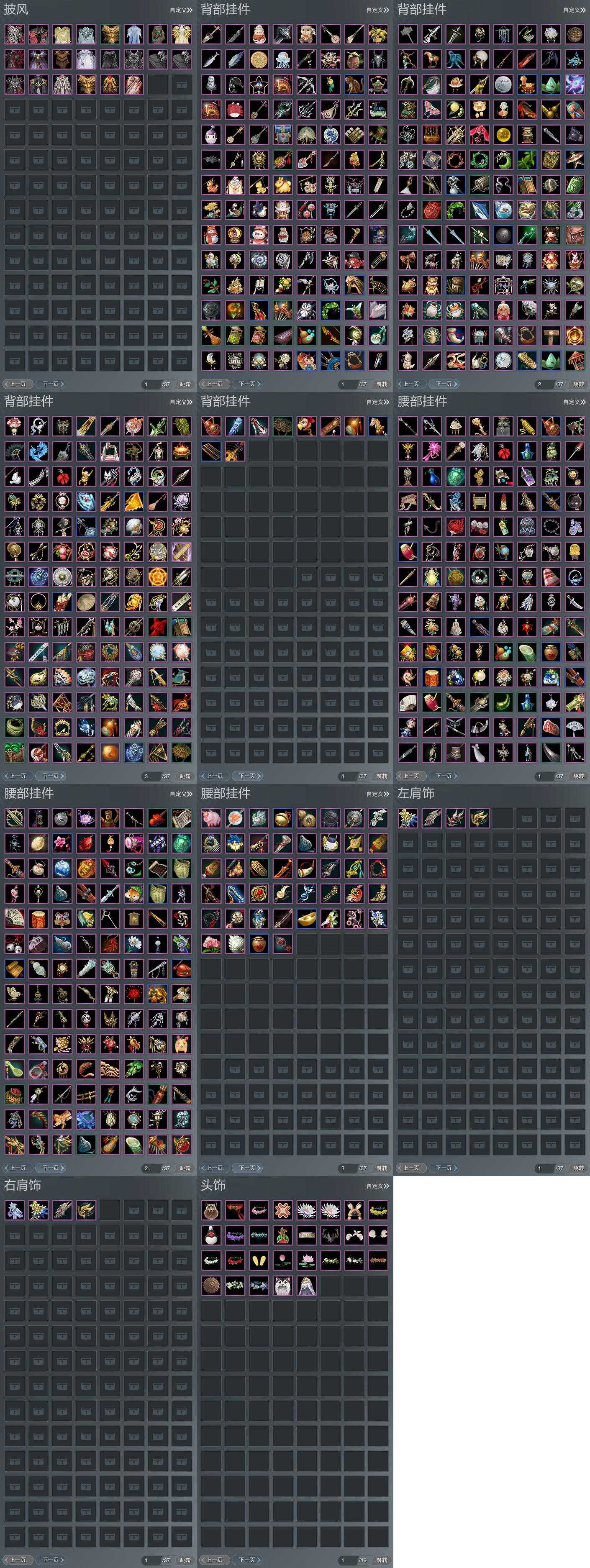 【披风】22个,[7W资历披风, 衍天预热披风, 红盒子披风, 一代恶人, 14W资历披风, 三山披风, 奇遇披风, 白盒子披风, 空山闲雪, 云麒赫奕, 繁华金语, 赤庭葳蕤]