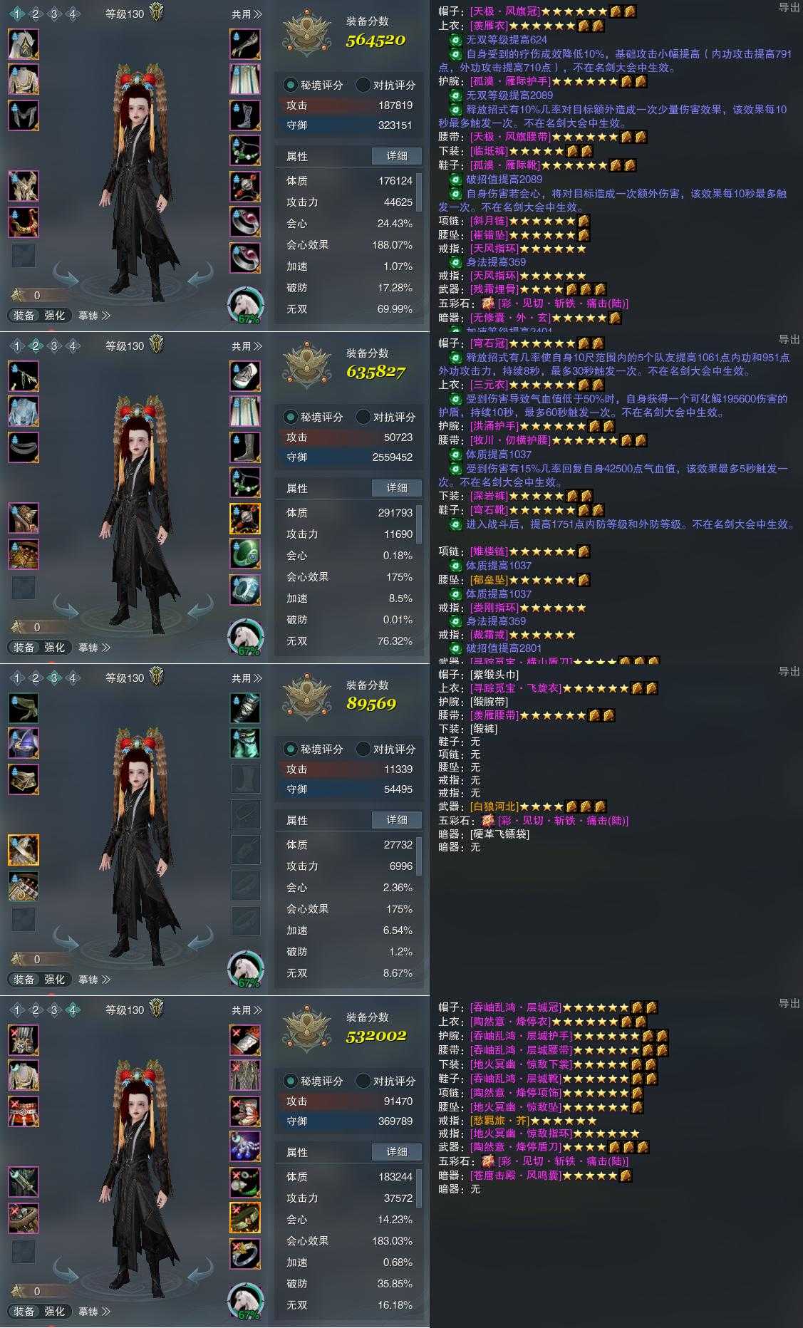 【装备】130级,苍云装备一564520,铁骨衣PVE635827,装备三89569,苍云装备四532002