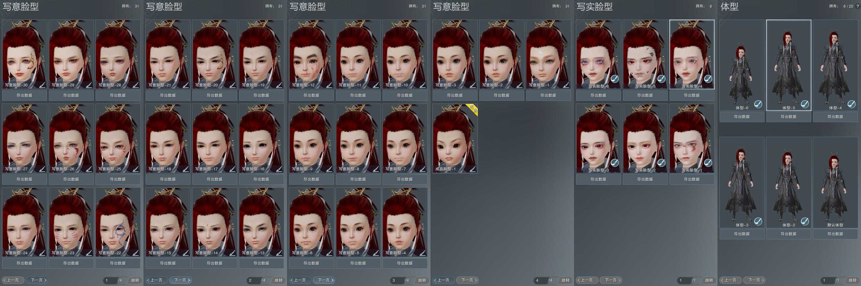 【捏脸】写意脸型31个,写实脸型6个,体型6个
