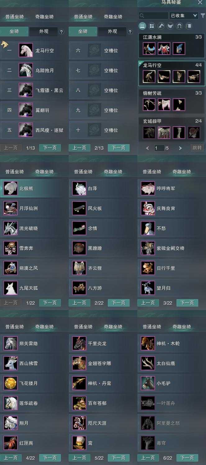 【坐骑】5个[西风瘦逐狱, 飞霞骠黑云, 乌蹄抱月, 白龙马]