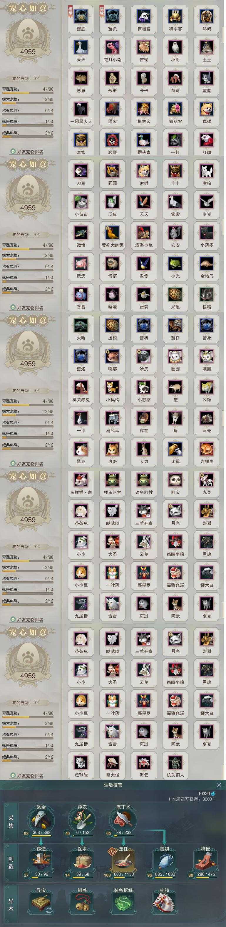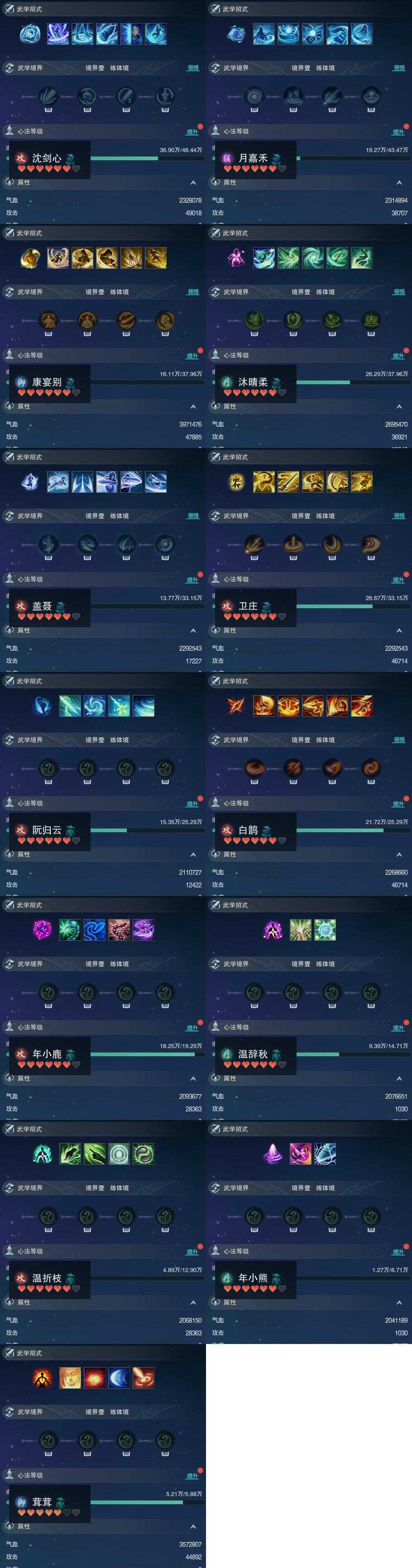 【同伴】沈剑心80级境界壹,月嘉禾78级境界壹,康宴别77级境界壹,沐晴柔77级境界壹,盖聂76级境界壹,卫庄意76级境界壹,阮归云74级境界壹,白鹊慈74级境界壹,年小鹿72级境界壹,温辞秋70级境界壹,温折枝69级境界壹,年小熊66级境界壹,茸茸志63级境界壹