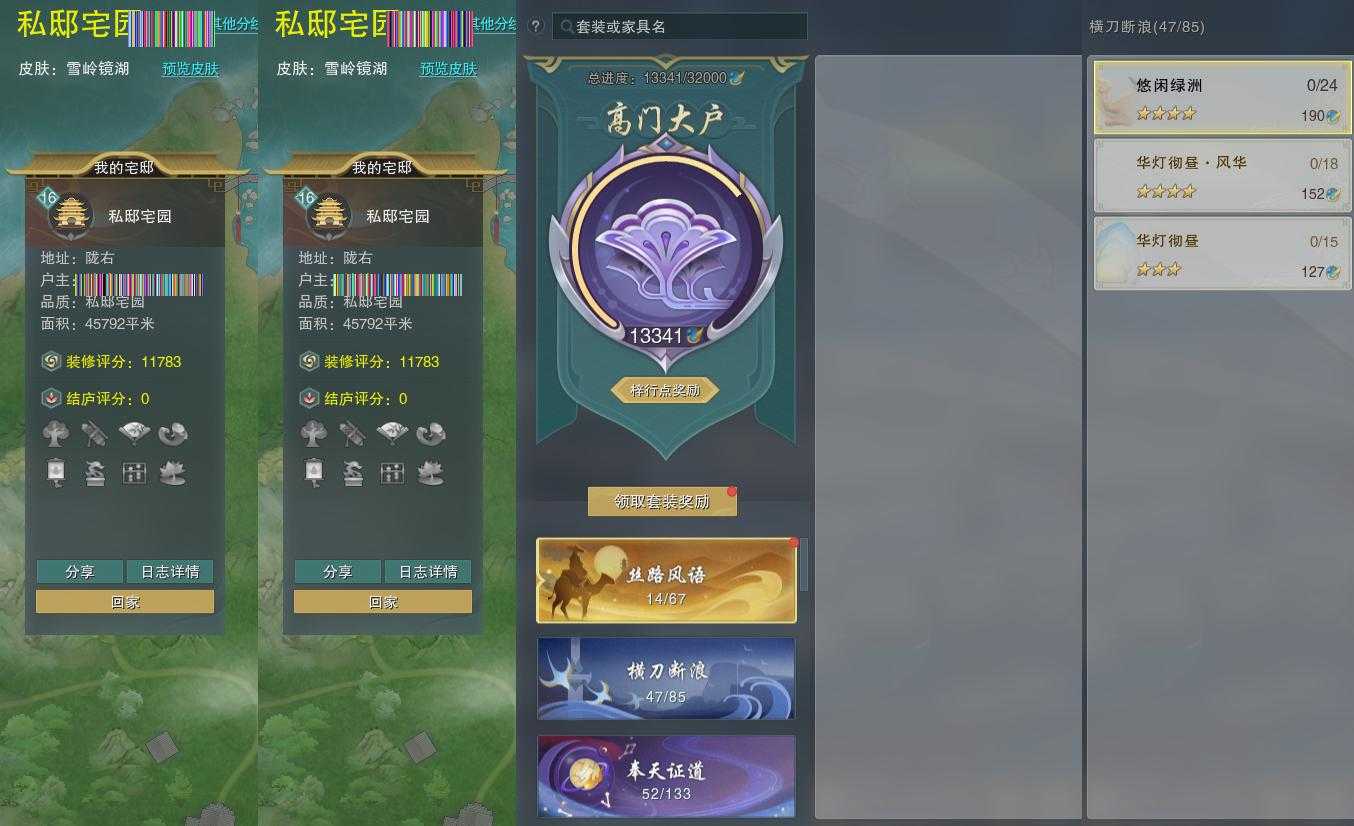 【家园】房屋等级16,社区等级,私邸宅园,梓行点13341