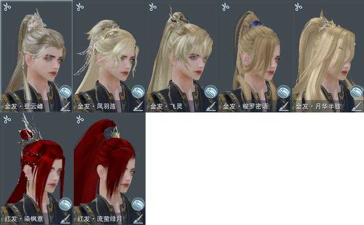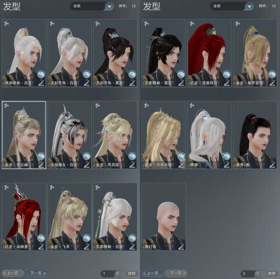 【发型】金发5个[资历金, 鸡金, 飒金, 凤金, 三代金], 红发2个[鼠红, 小资历红], 黑发2个, 白发5个, 盒子发型[小白龙黑发, 小白龙白发, 沧海白发], 总页数2