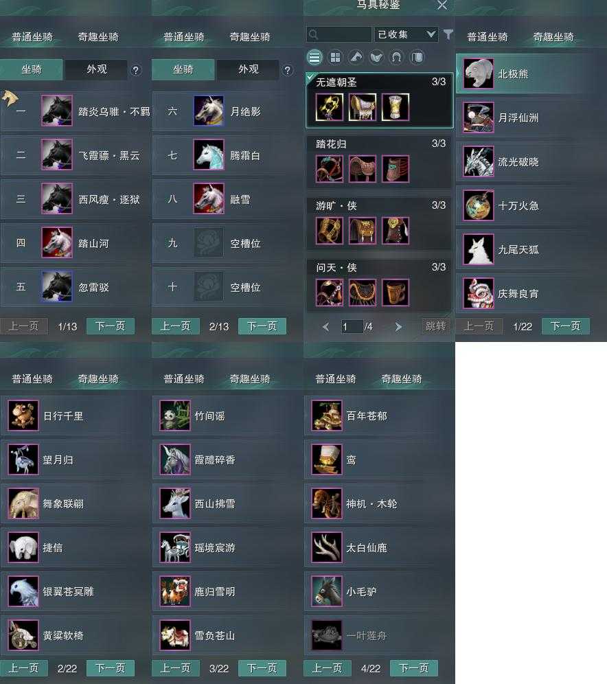 【坐骑】8个[踏炎不羁, 西风瘦逐狱, 飞霞骠黑云]