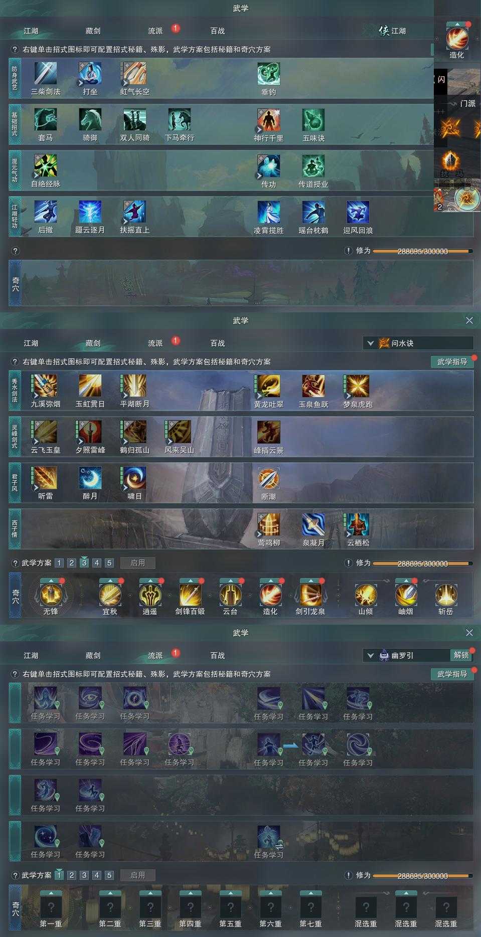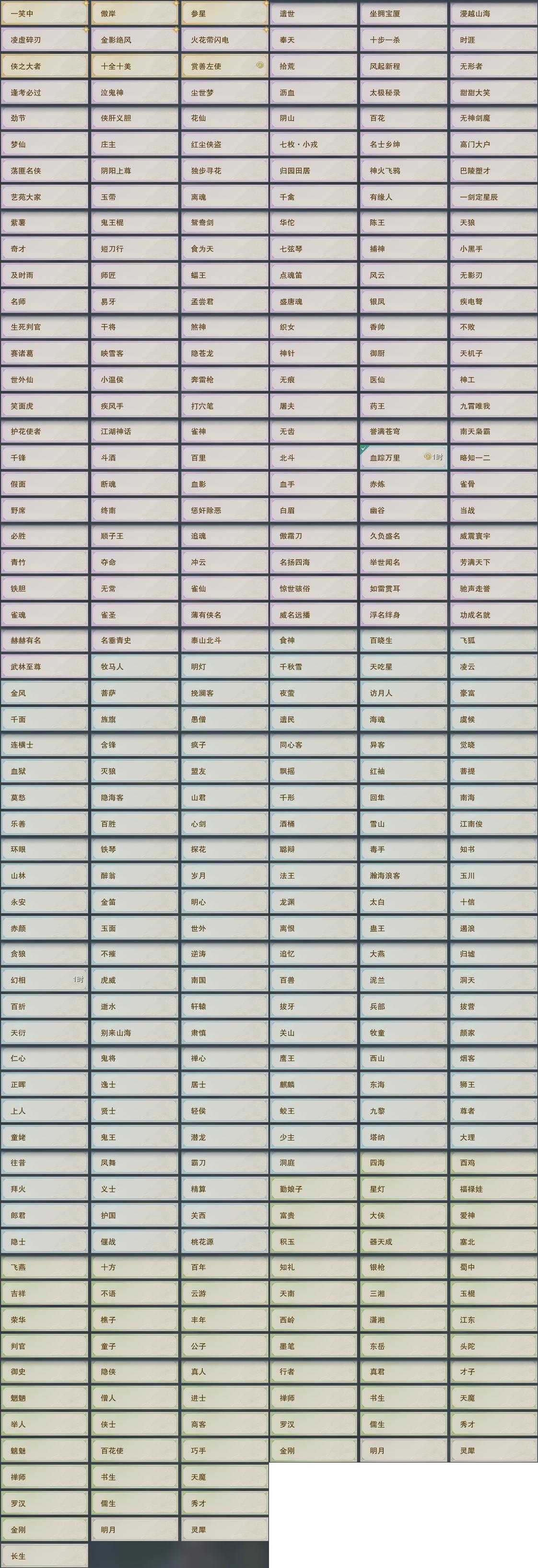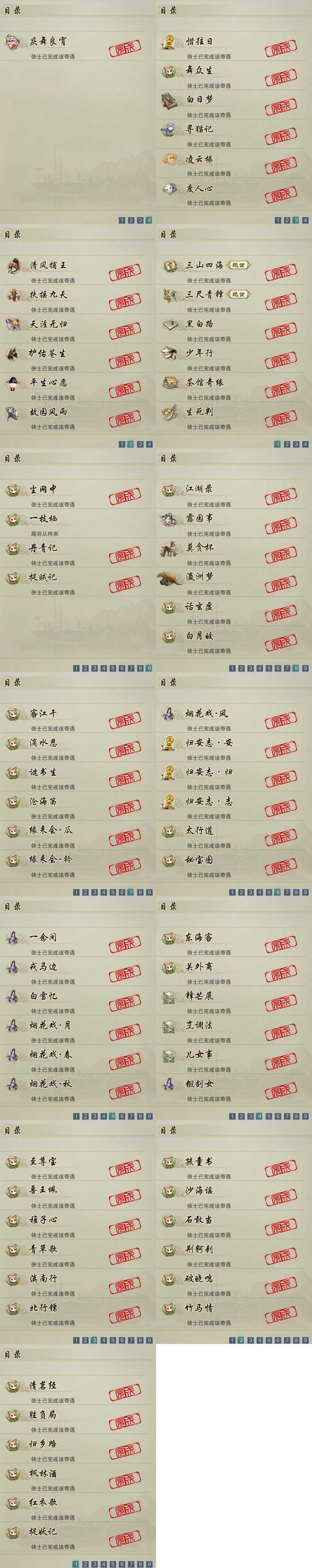 【奇遇】19个[白日梦, 天涯无归, 三山四海, 平生心愿, 黑白路, 惜往日, 护佑苍生, 少年行, 扶摇九天, 故园风雨, 三尺青锋, 舞众生, 清风捕王, 寻猫记, 茶馆奇缘, 庆舞良宵, 生死判, 凌云梯, 度人心]