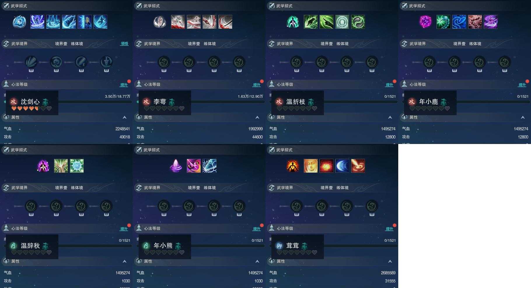 【同伴】沈剑心73级境界壹,李萼志69级境界壹,温折枝1级境界壹,年小鹿1级境界壹,温辞秋1级境界壹,年小熊1级境界壹,茸茸志1级境界壹