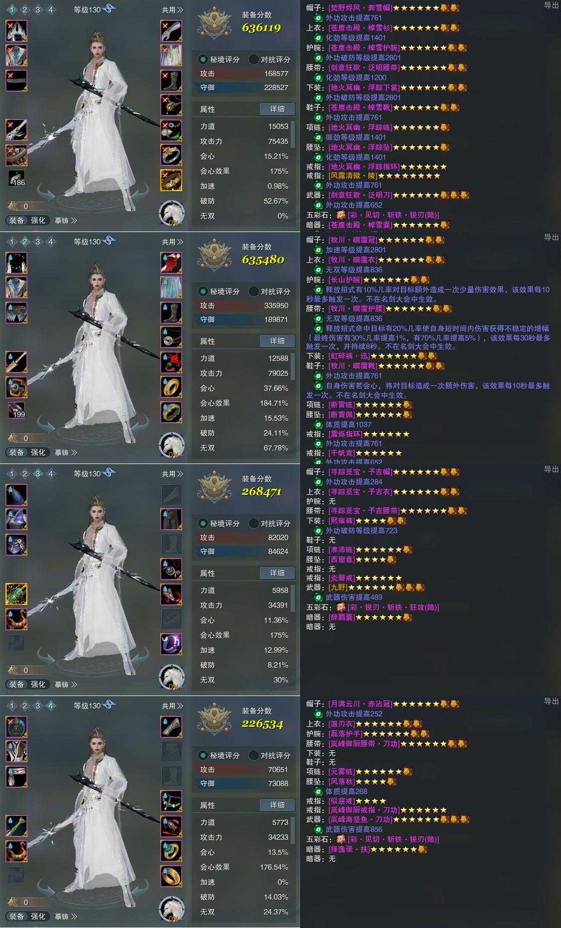 【装备】130级,孤锋诀PVP636119,孤锋诀PVE635480,装备三268471,装备四226534
