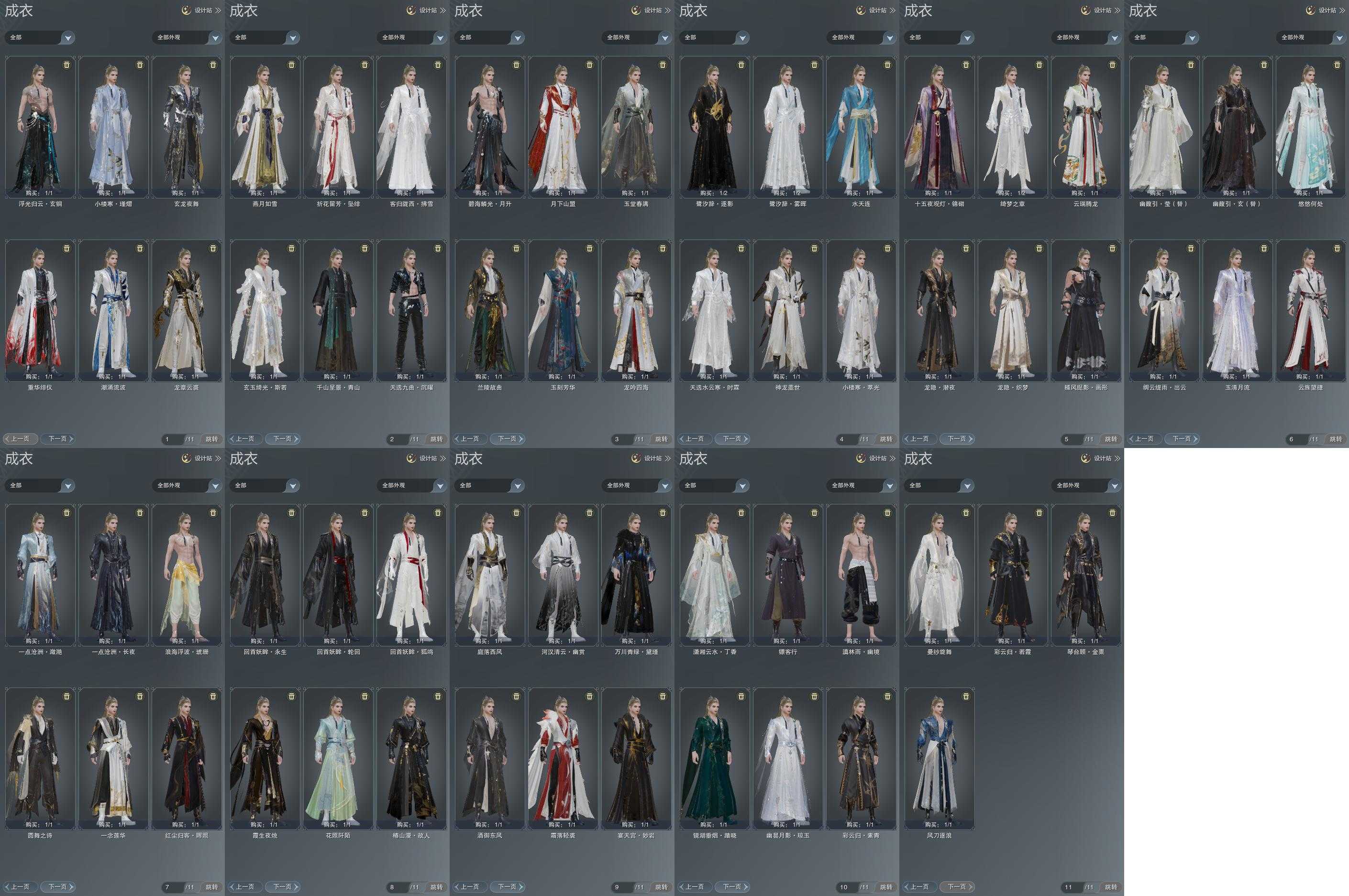 单盒成衣:[丝路盒衣, 黑红尘衣, 黑狮盒衣, 白幽馥衣替, 黑幽馥衣替, 黑龙隐衣, 黑浮光]
