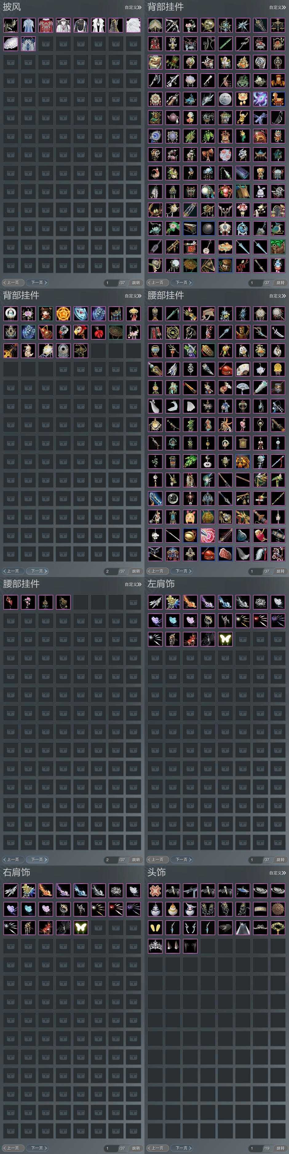 【肩饰】21左,21右,[玄龙夜舞·左, 双鱼曳波·慧福·左, 双鱼曳波·如意·左, 双鱼曳波·极乐·左, 双鱼曳波·无量·左, 绝代仙·墨楼·左, 熠心波·露彩·左, 熠心波·轻霞·左, 熠心波·清宴·左, 熠心波·清宴·左, 云瑞腾龙·左, 云旌望捷·左, 漱玉寒·奇彩·左, 漱玉寒·火绸·左, 漱玉寒·紫殿·左, 漱玉寒·冰青·左, 一念莲华·左, 霜落轻裘·左, 风刀逐浪·左, 觅花踪·黄云·左][玄龙夜舞·右, 绝代仙·墨楼·右, 熠心波·含娇·右, 熠心波·含娇·右, 熠心波·清宴·右, 熠心波·清宴·右, 云瑞腾龙·右, 云旌望捷·右, 漱玉寒·奇彩·右, 漱玉寒·火绸·右, 漱玉寒·紫殿·右, 漱玉寒·冰青·右, 一念莲华·右, 霜落轻裘·右, 风刀逐浪·右, 觅花踪·黄云·右]